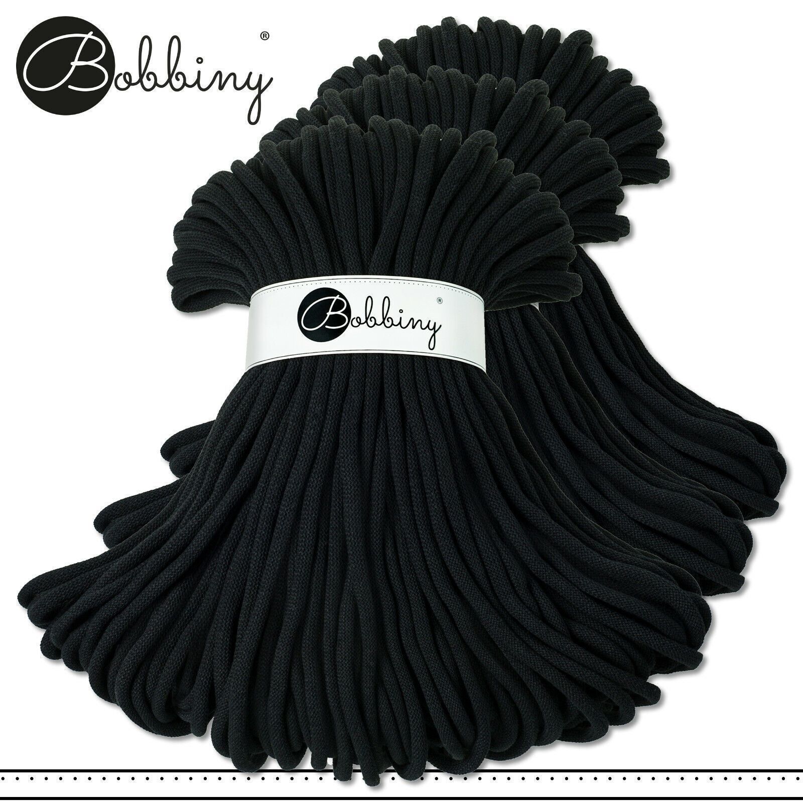 Bobbiny 3x 100m Flechtkordel 9mm | Black | Nähen Basteln Baumwolle Hobby Premium