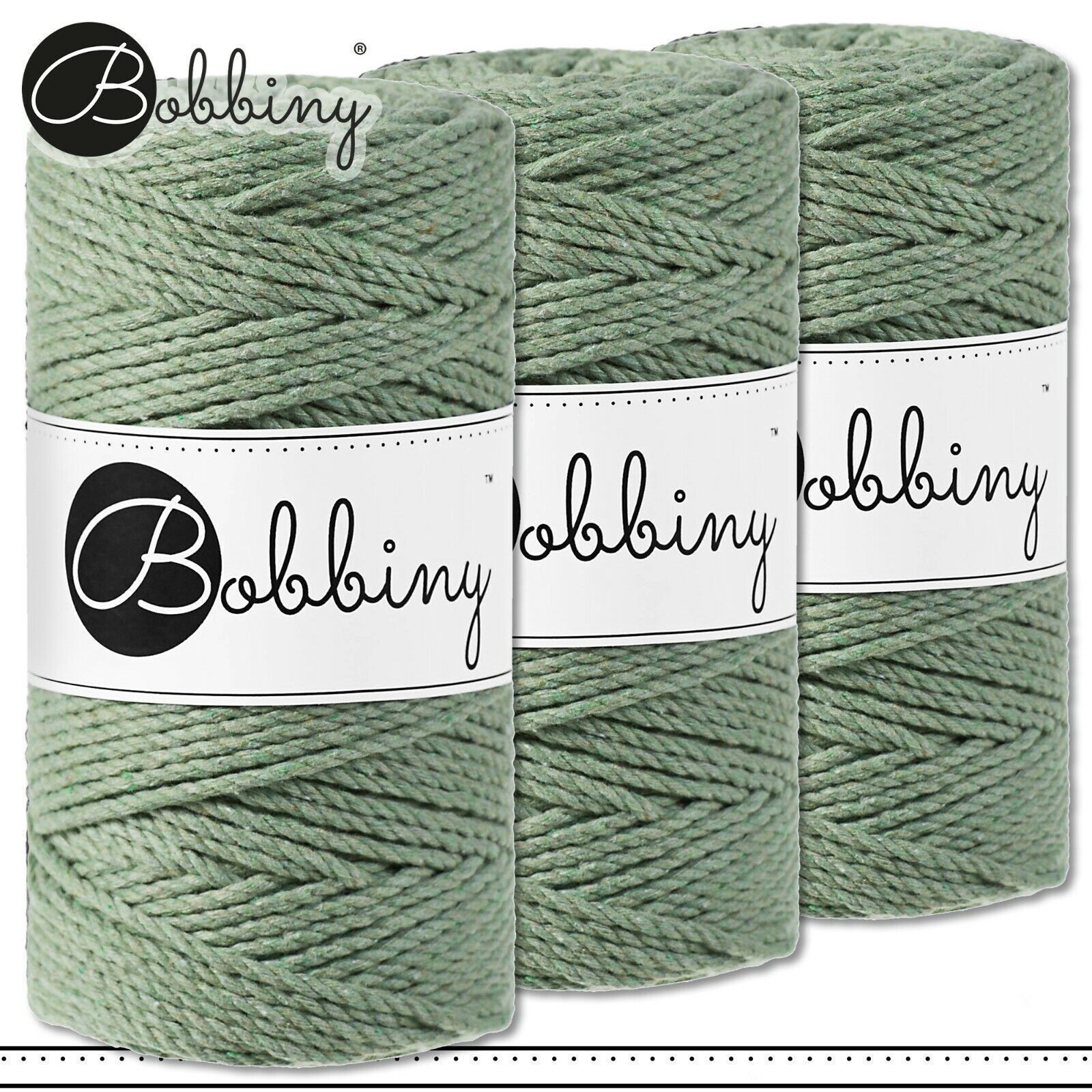 Bobbiny 3x100 m Makramee-Kordel 3 mm dreifach gedreht |Eucalyptus Green| Premium