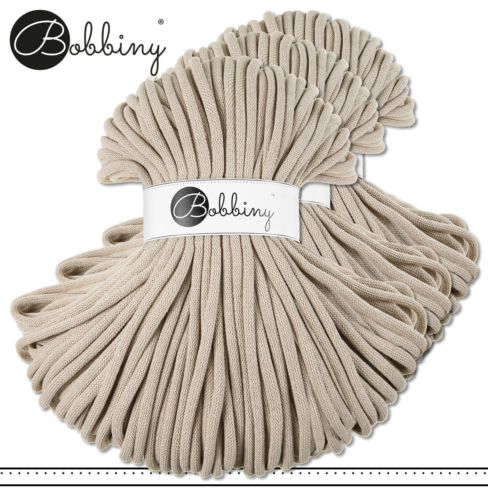 Bobbiny 3x100m Flechtkordel 9 mm | Beige | Nähen Basteln Baumwolle Hobby Premium