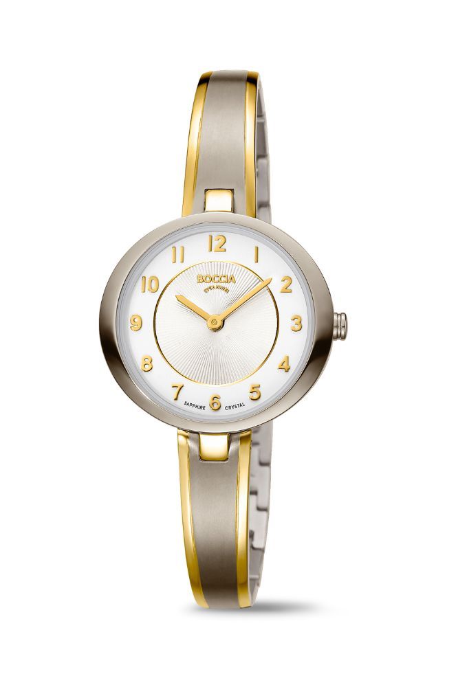 Boccia Boccia Damenuhr 3377-01 Reintitan, Goldplattiert, Saphirglas