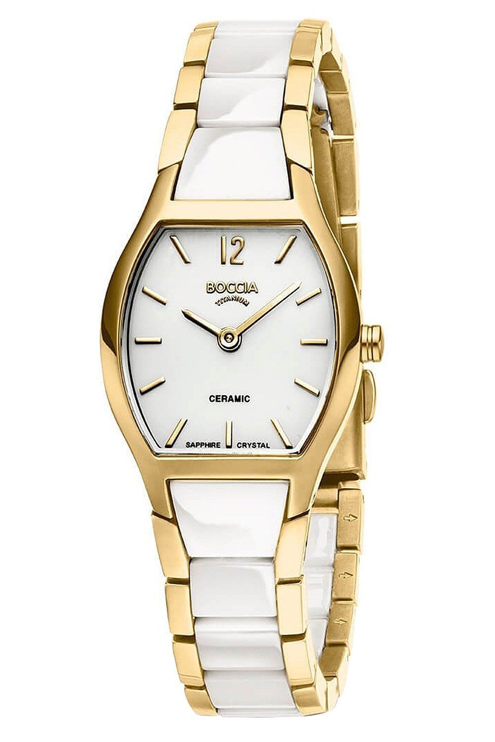 Boccia Boccia Damenuhr Titan Goldfarben/Keramik Weiß 3361-03