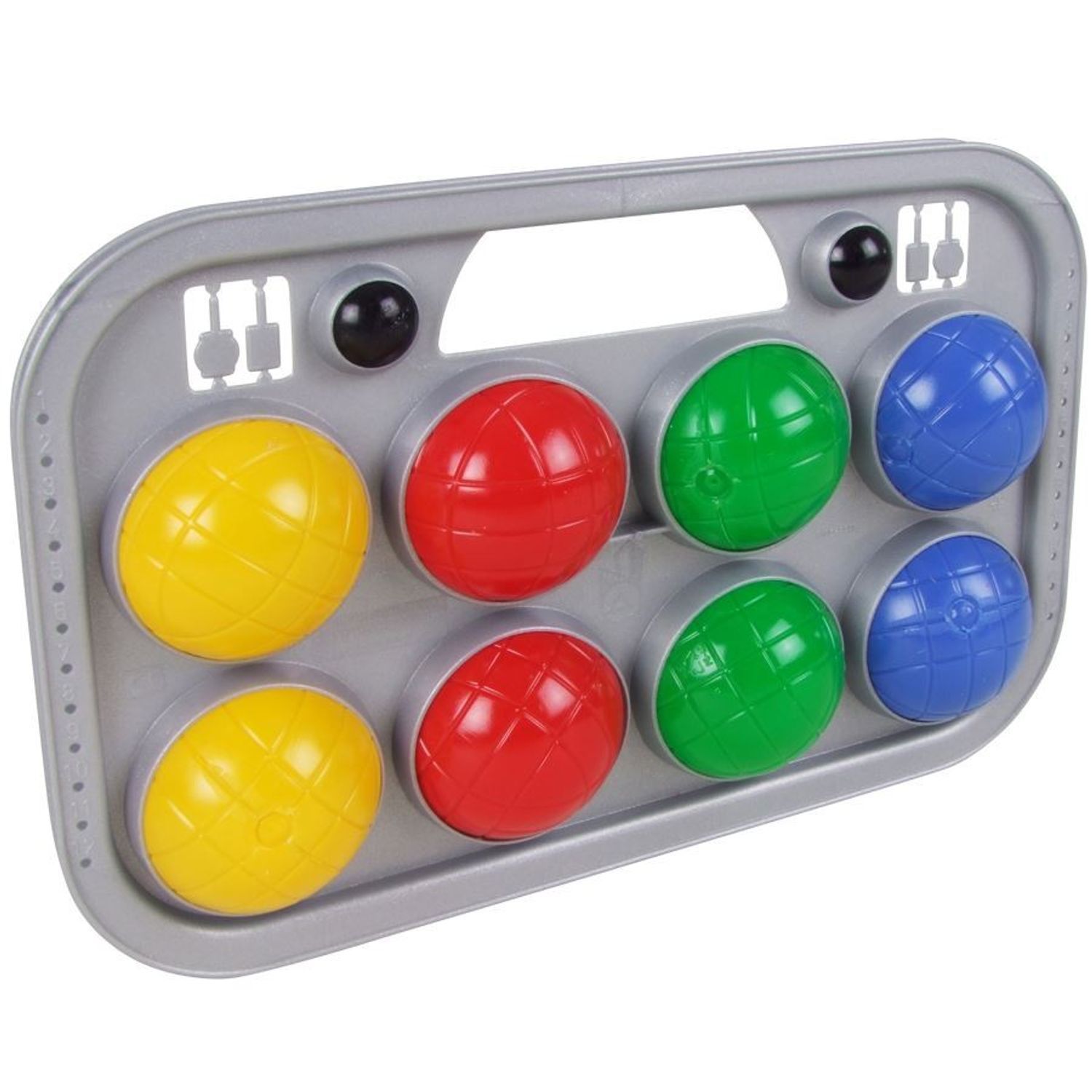 Boccia-Set mit 8 farbigen Kugeln und 2 schwarzen Zielkugeln im praktischen Tragekorb. Dieses Spiel kann mit mehreren Einzelspielern oder in Teams gespielt werden. Ziel beim Boccia ist es, mit seiner eigenen Kugel möglichst nah an die Zielkugel heran zu kommen. Dieses Boccia-Spiel sorgt für viel Spaß im Garten oder am Strand. - im Tragekorb - mit 8 farbigen Kugeln und 2 schwarzen Zielkugeln - Durchmesser je Farbkugel: ca. 7 cm - Durchmesser je Zielkugel:ca. 2,5 cm