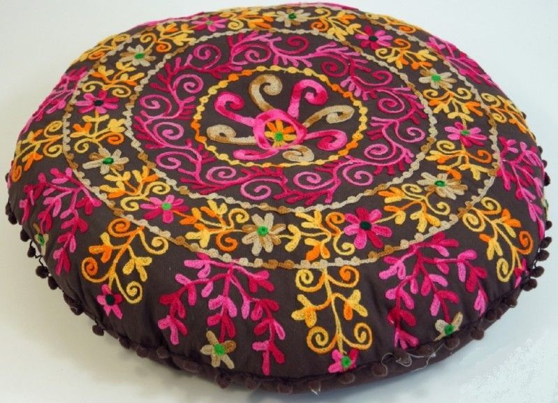 Boden-Kissen, handbestickt, Durchmesser ca. 50 cm, Sitzkissen