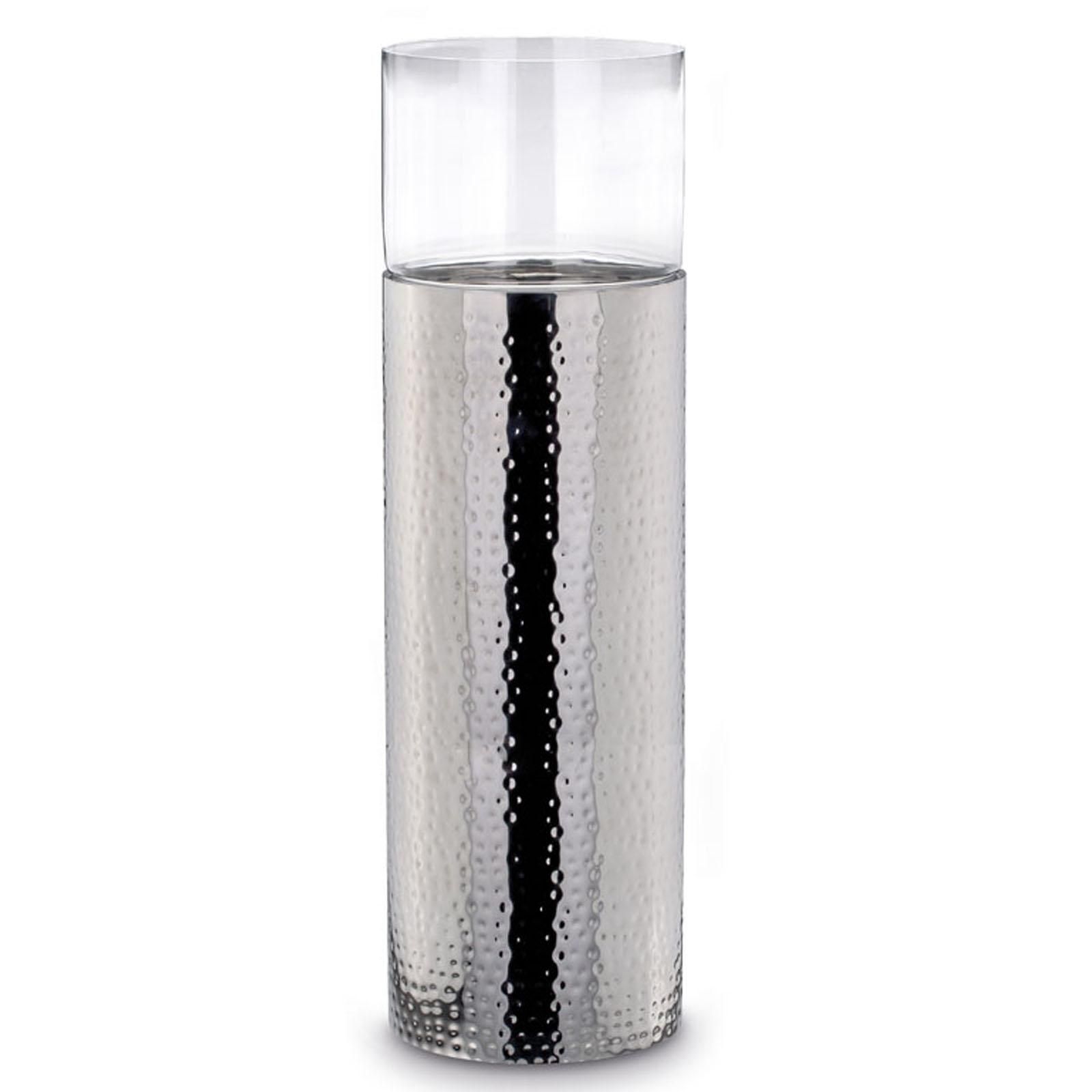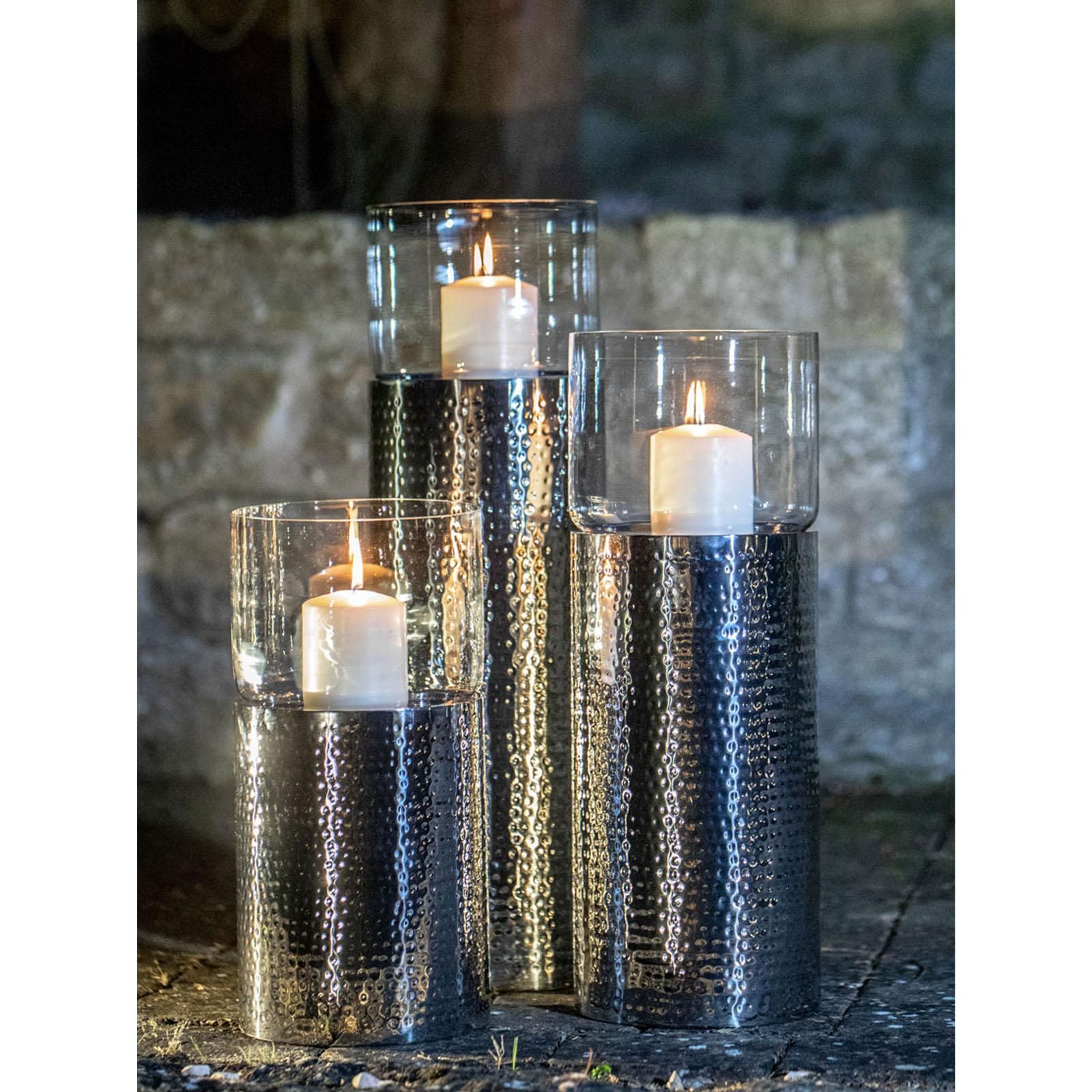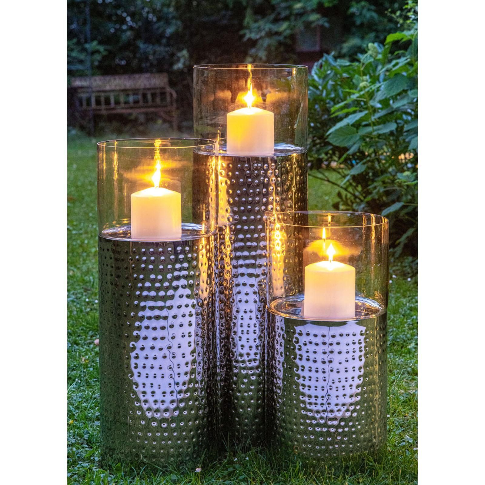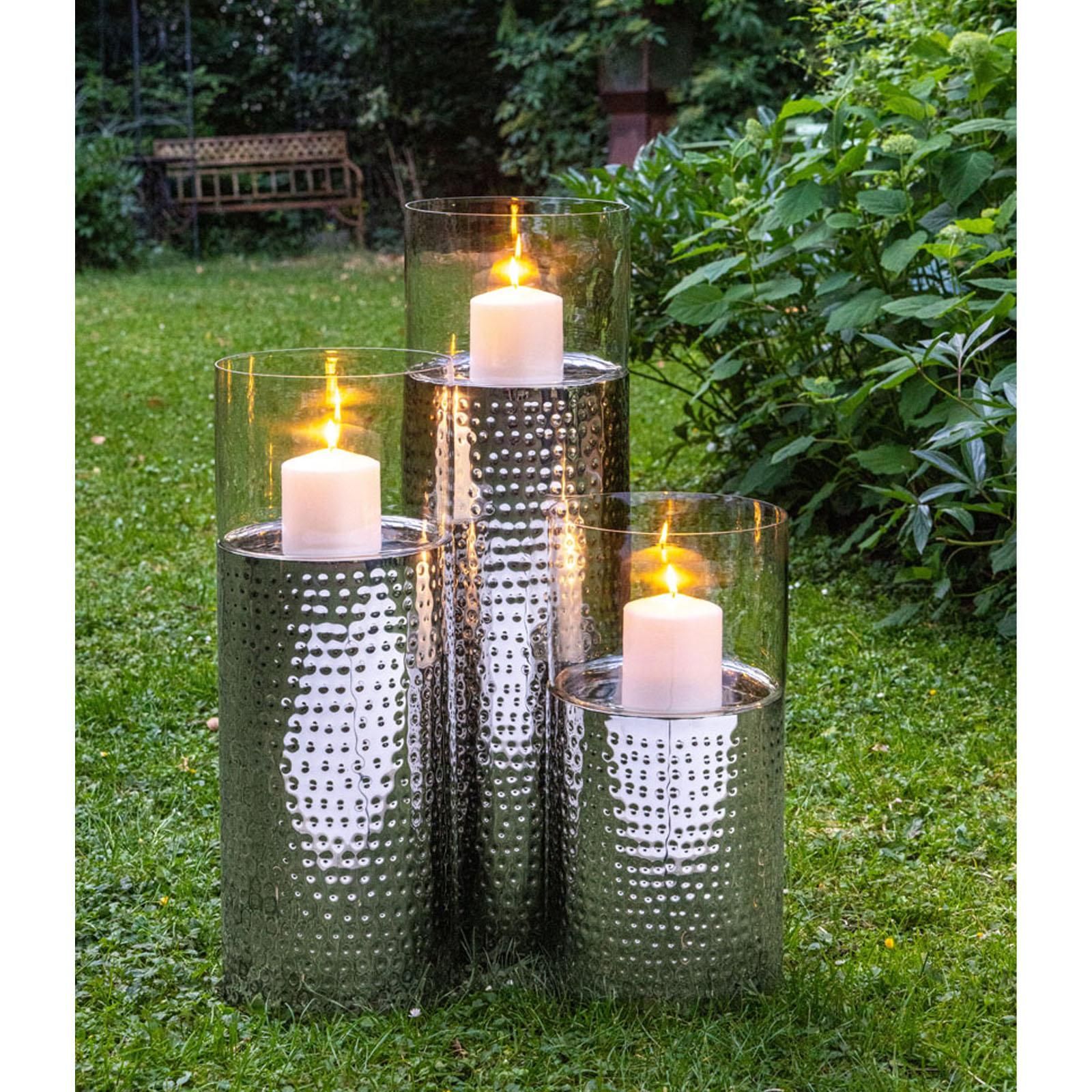 Boden-Windlicht 79 cm Edelstahl gehämmert Stand-Kerzenhalter inkl. Glaszylinder