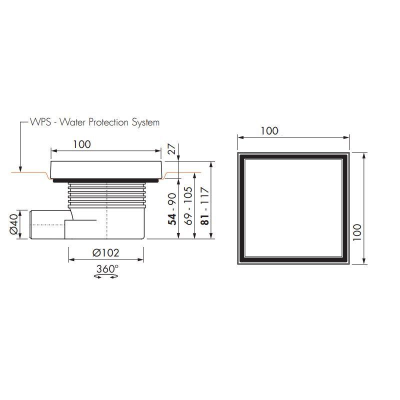 Bodenablauf 100 x 100mm Komplett-Set, ESS Aqua Quattro zum verfliesen, MSI6-T