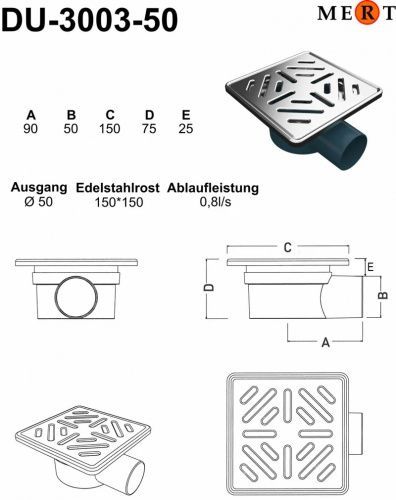 Bodenablauf Ablaufrinne Dusch Ablauf 15x15 cm Duschrinne Badablauf Siphon für Bad