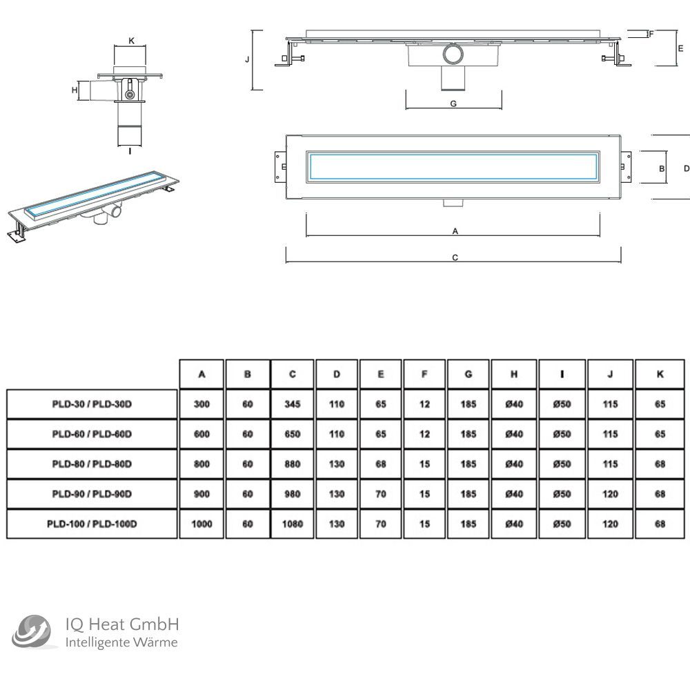 MERT Bodenablauf Duschablauf Duschrinne mit Design-Edelstahlrost gebürstet 300 - 1000