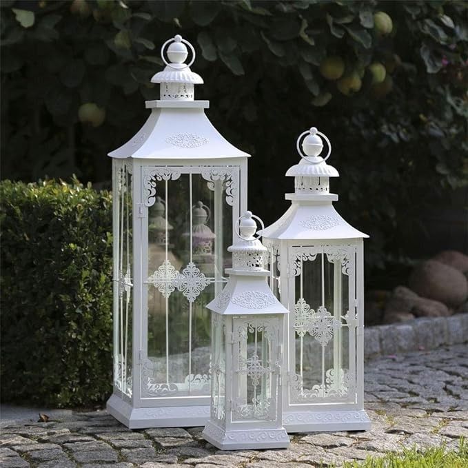 Bodenlaterne Laterne mit Glasseinsatz Größe 40 x 12 x 12 cm Farbe Weiß Motiv Orient Romantik