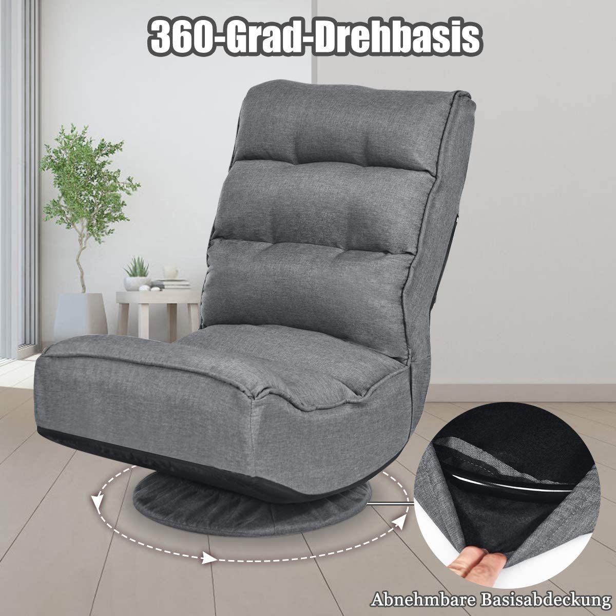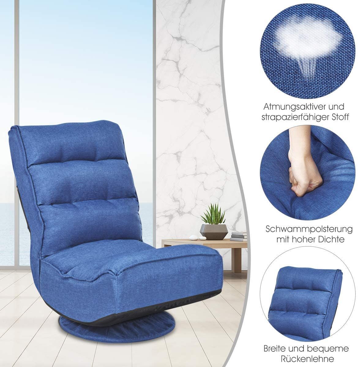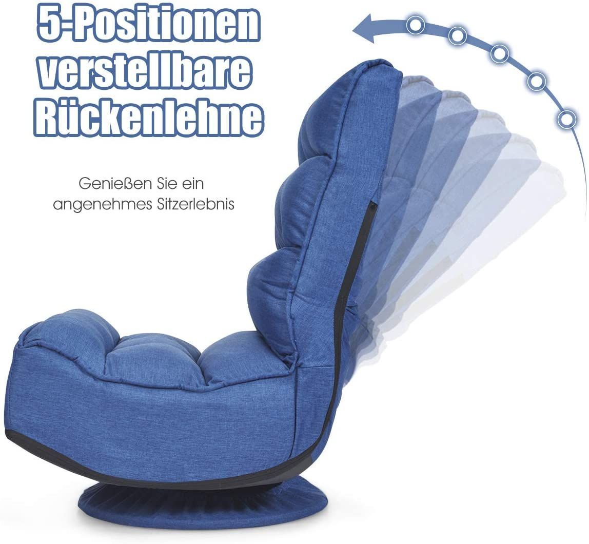 Bodenstuhl 360°drehbar, Bodensessel mit 5-Fach Verstellbarer Rückenlehne, Game Sessel