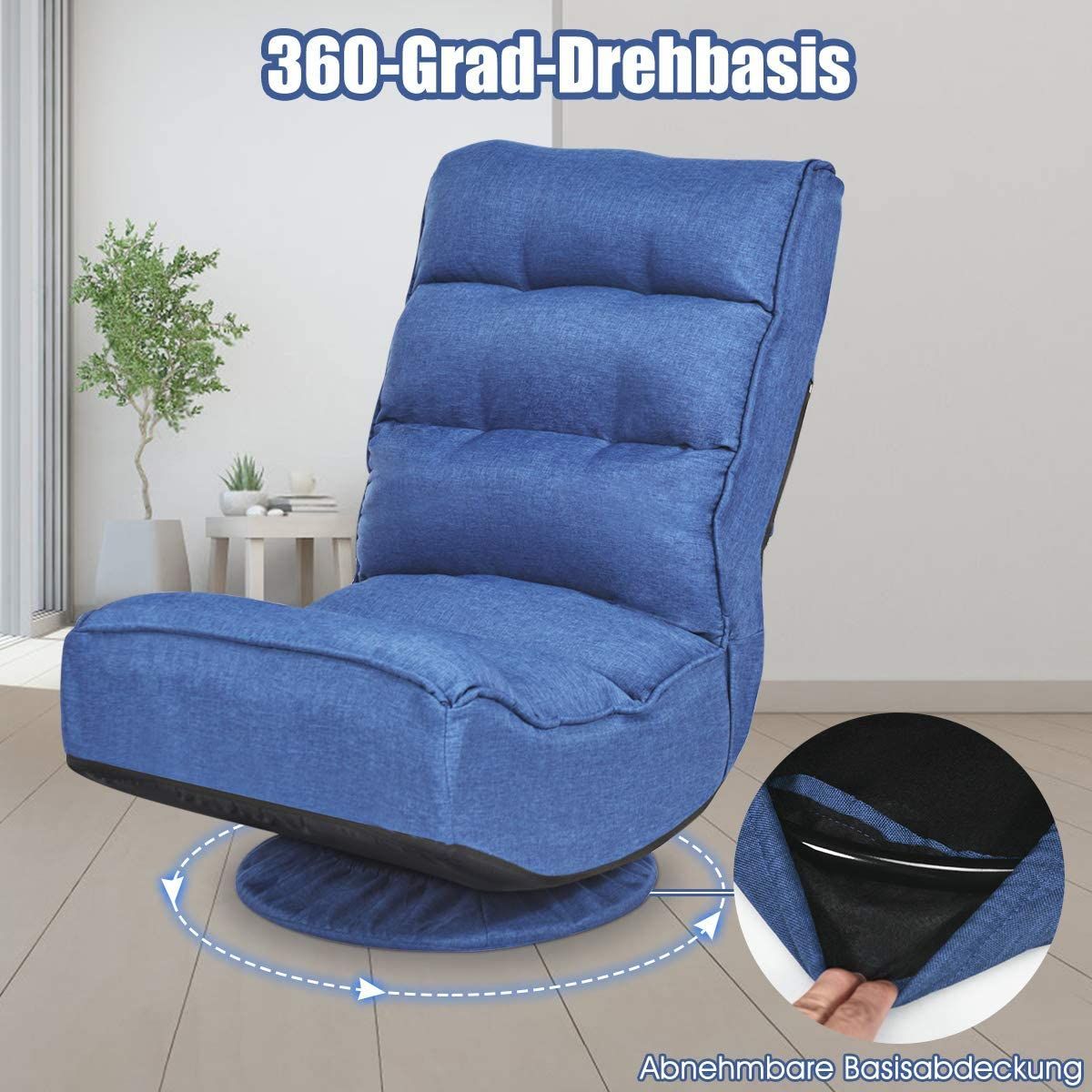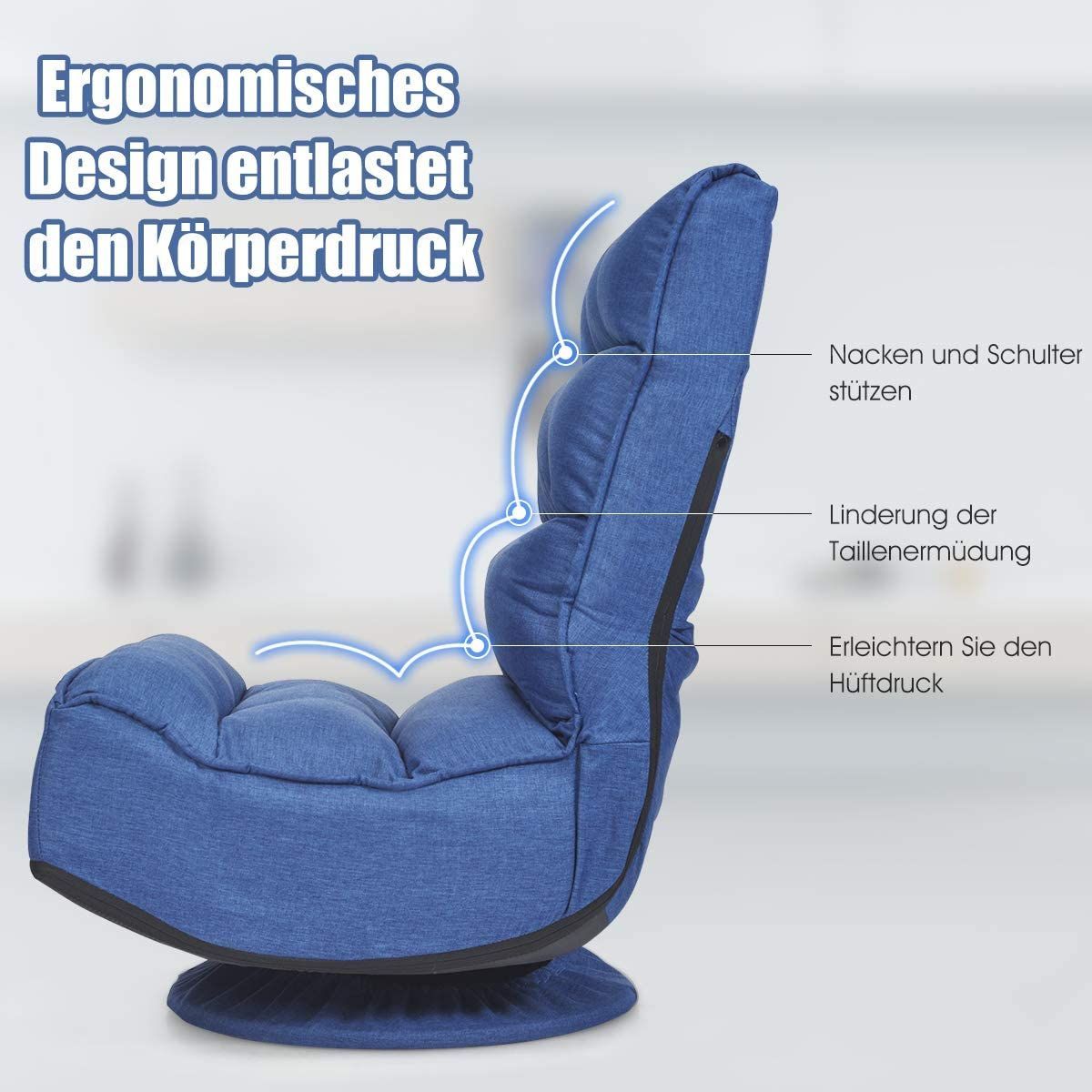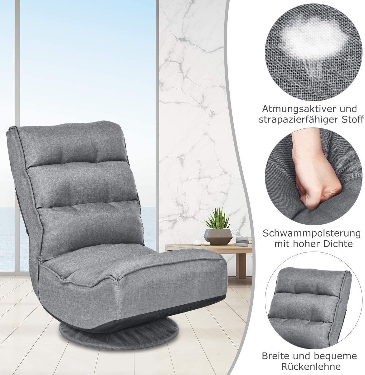 Bodenstuhl 360°drehbar, Bodensessel mit 5-Fach Verstellbarer Rückenlehne, Game Sessel