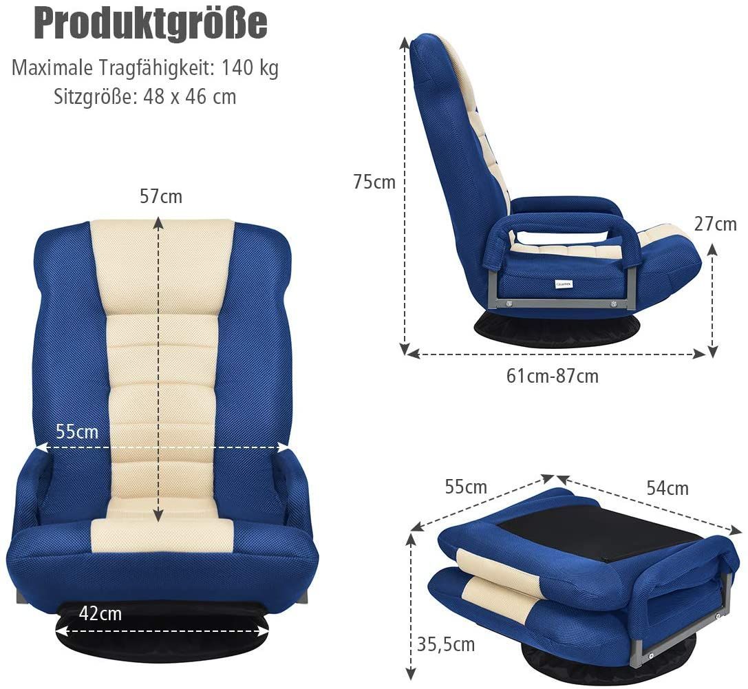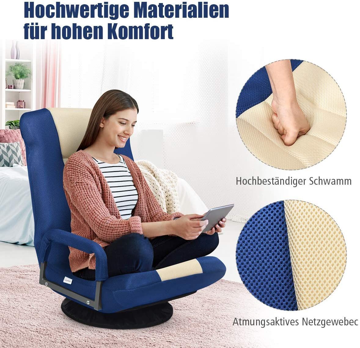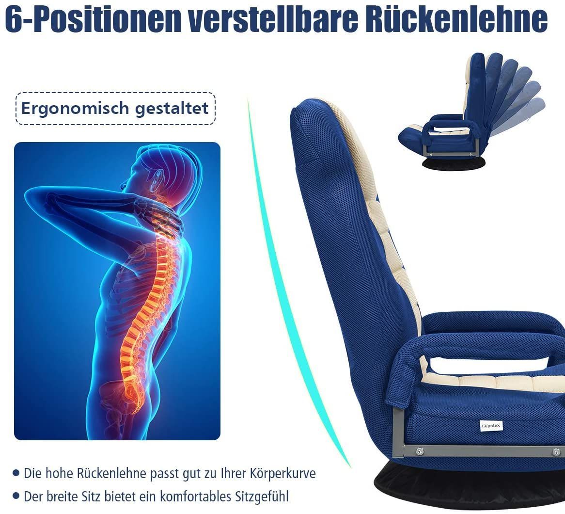 Bodenstuhl 360° drehbar, Bodensessel mit 6-Fach Verstellbarer Rückenlehne