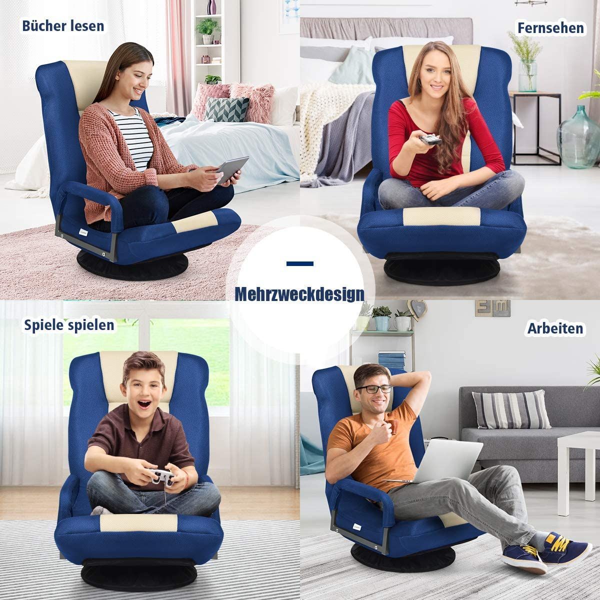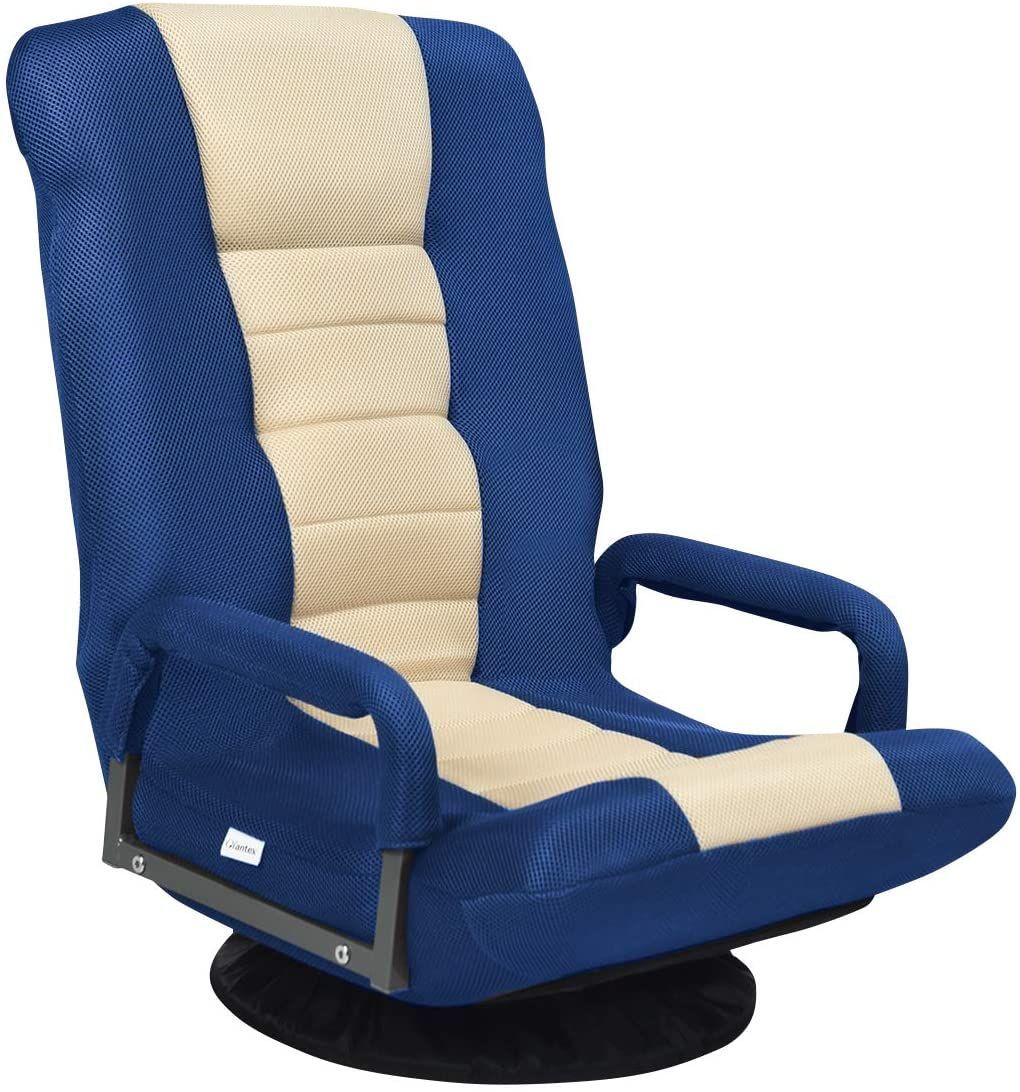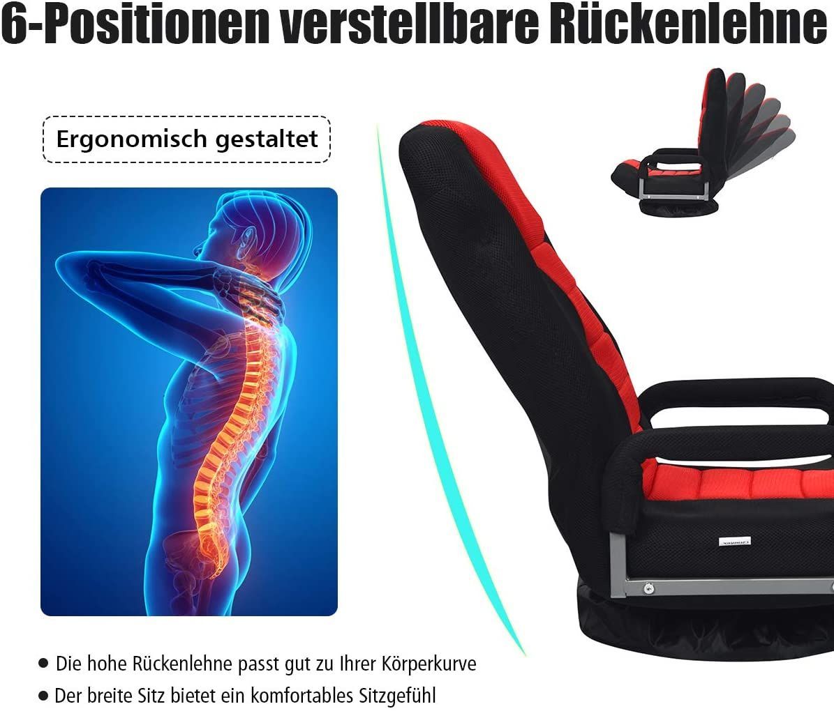 Bodenstuhl 360° drehbar, Bodensessel mit 6-Fach Verstellbarer Rückenlehne