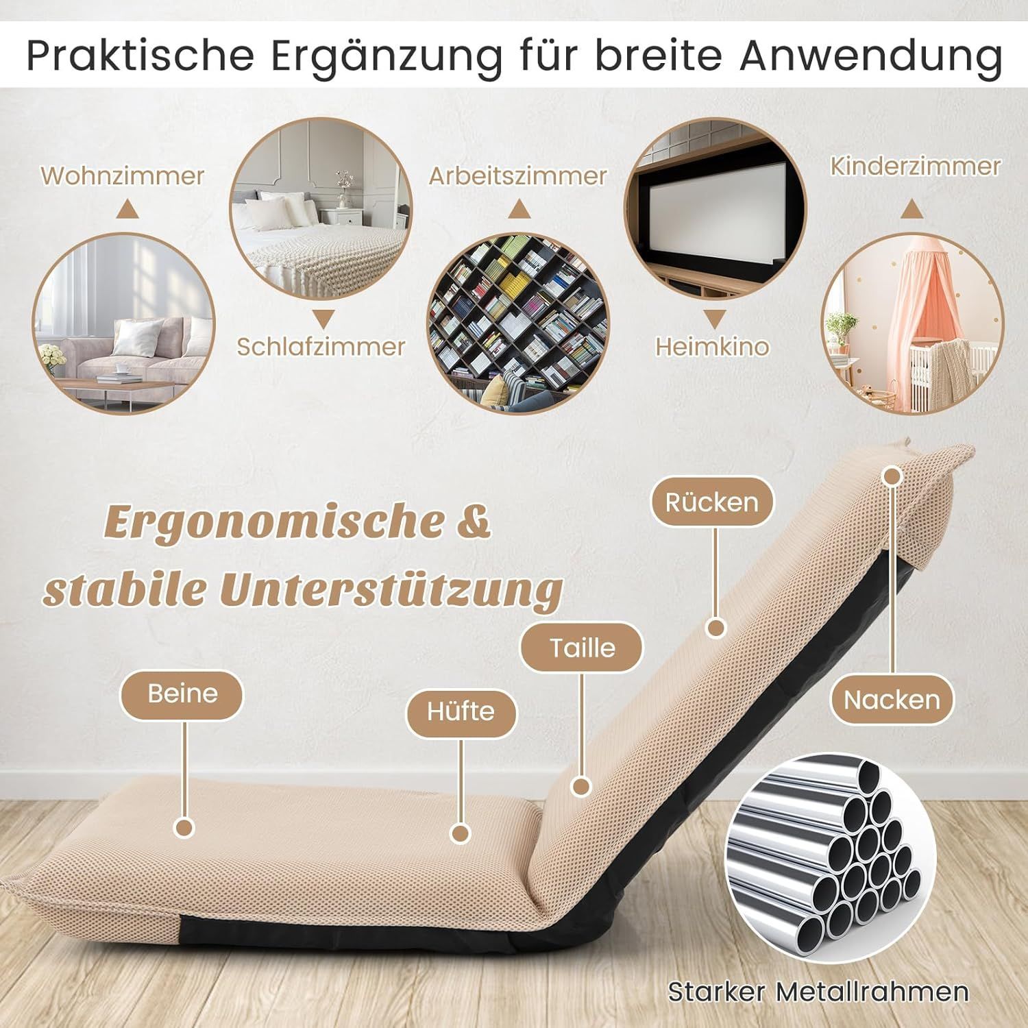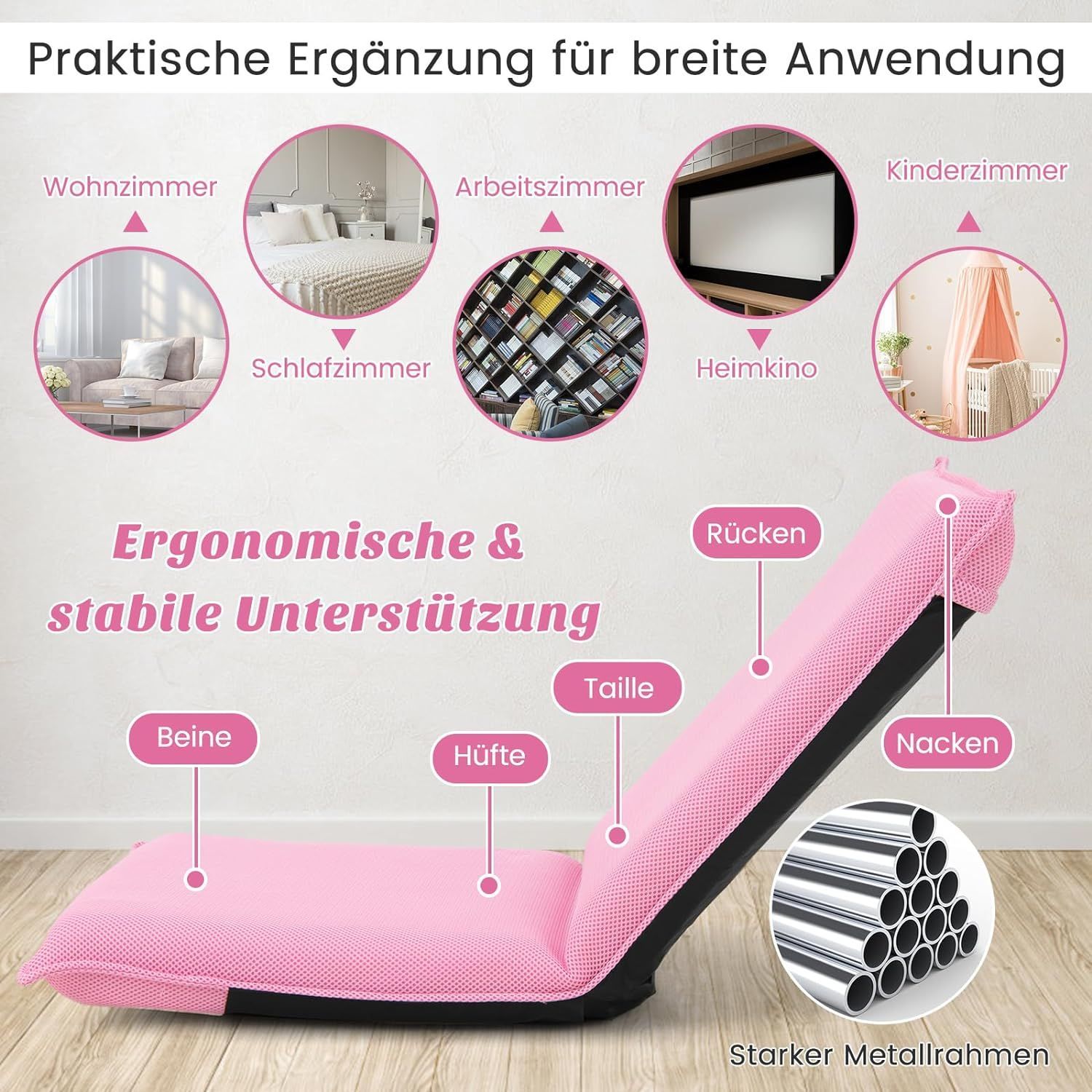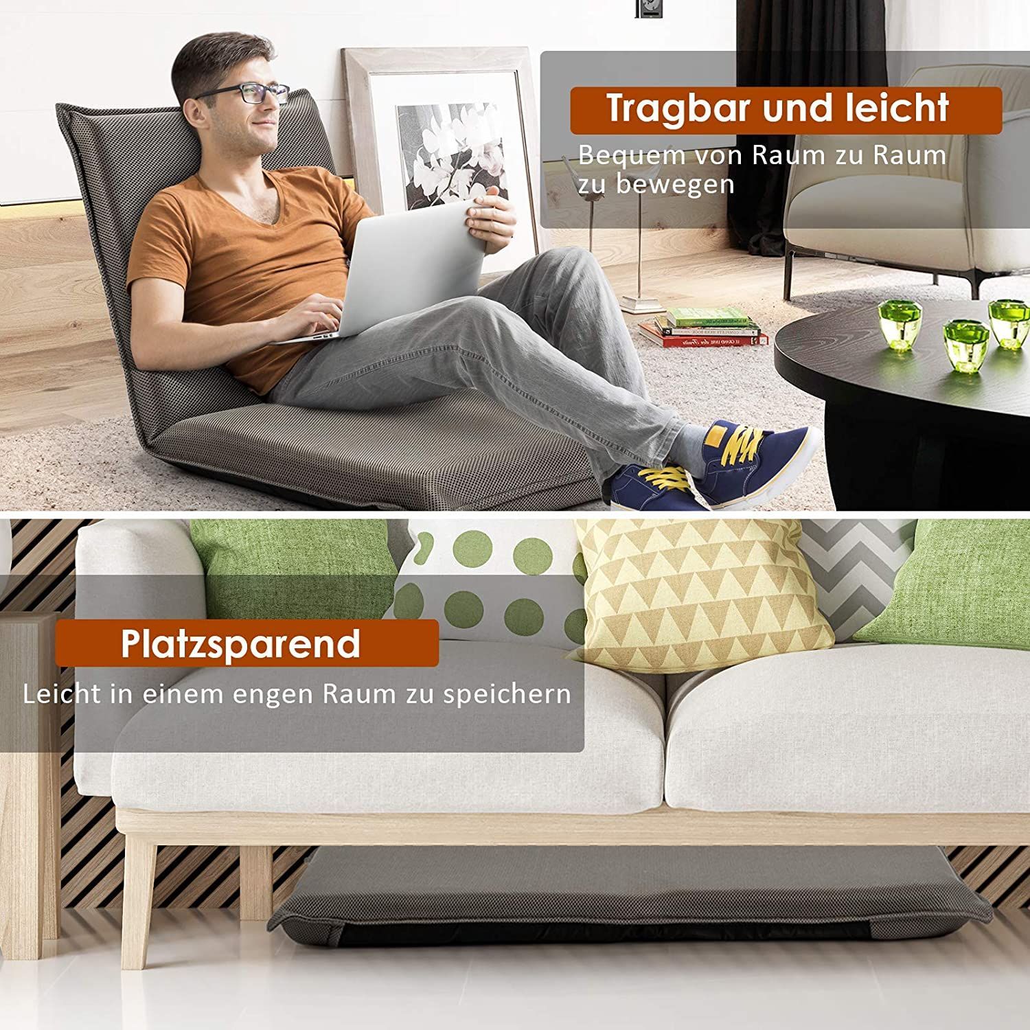 Bodenstuhl Bodensessel mit 6- stufig Verstellbarer Rückenlehne Game Sessel gepolstert