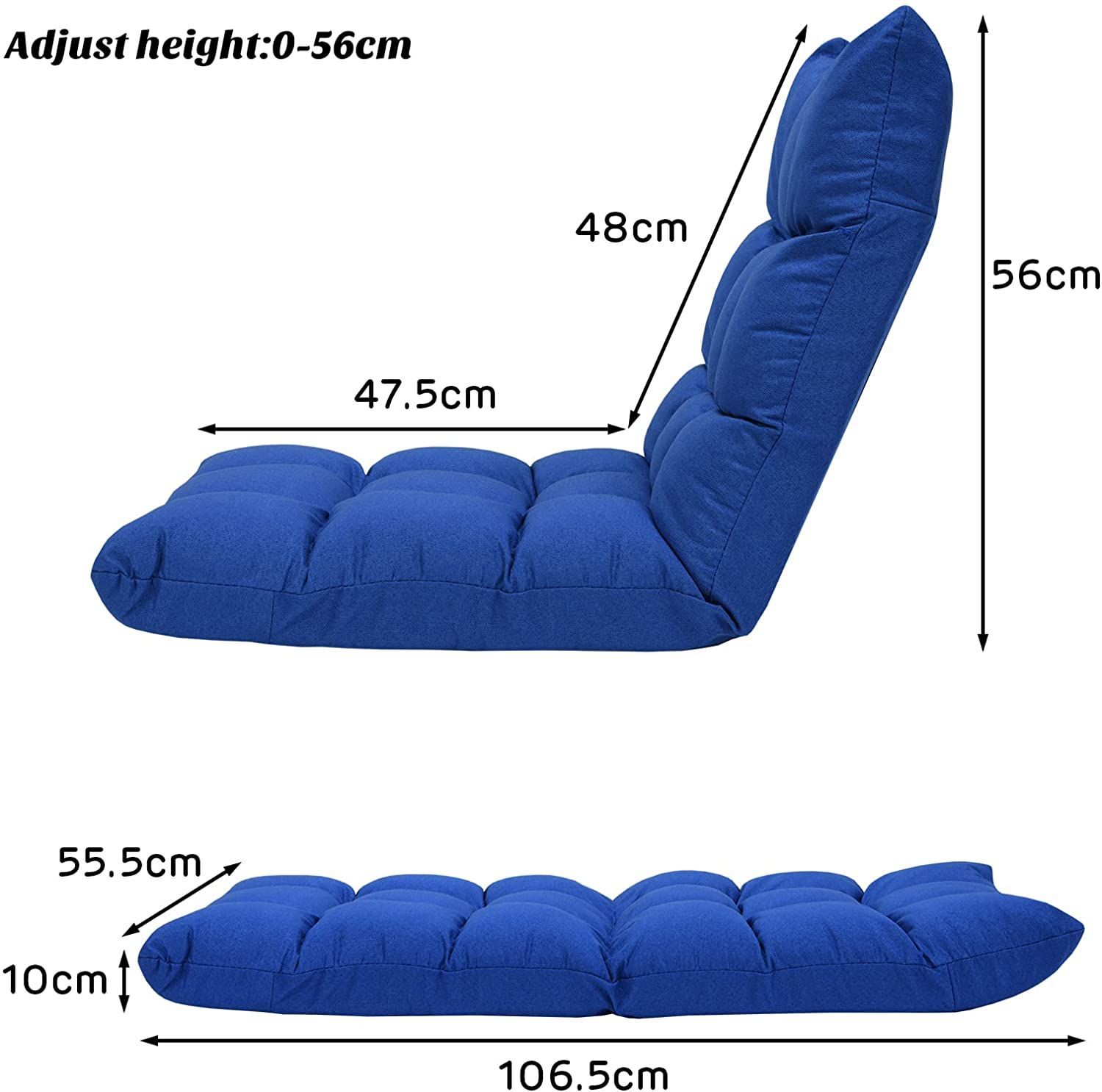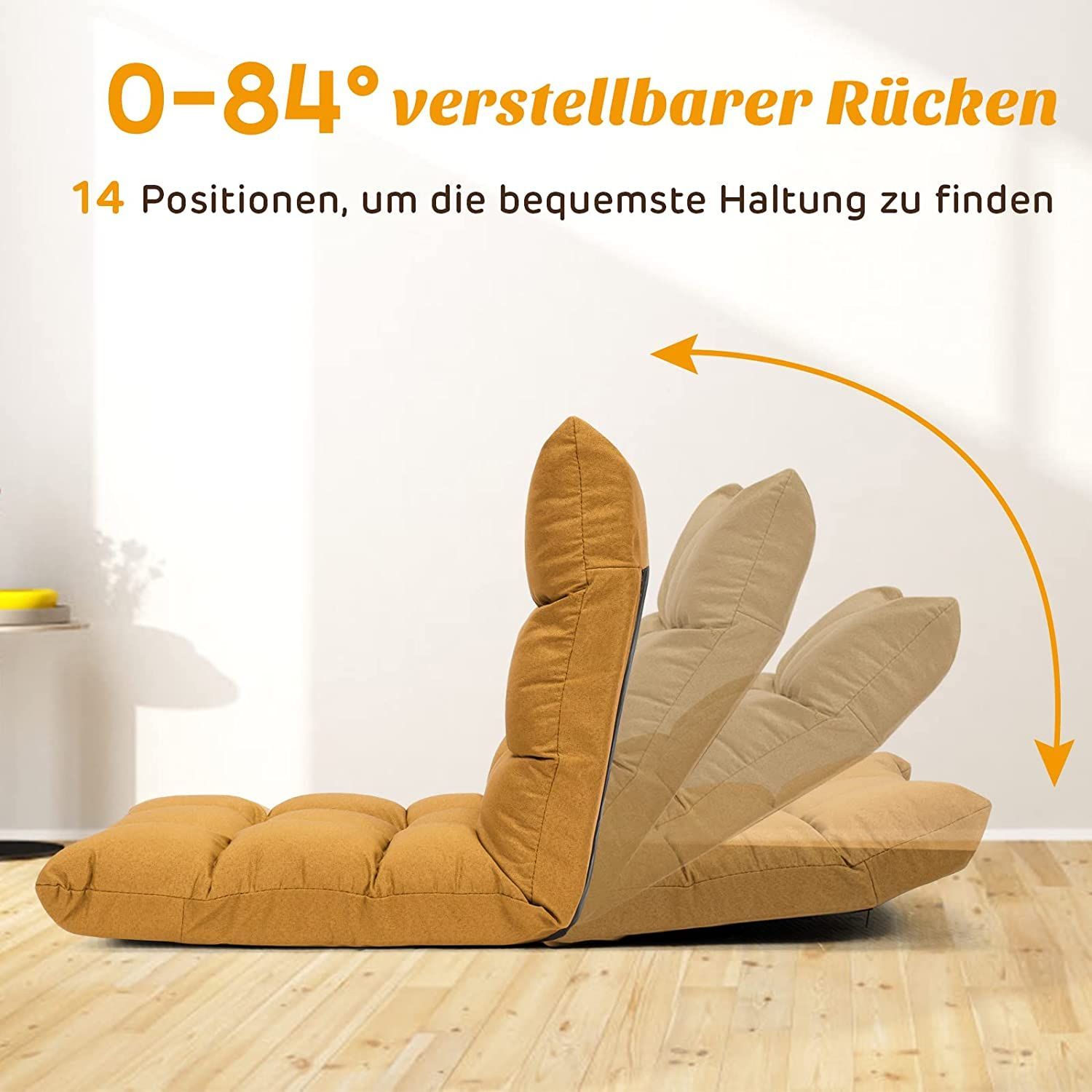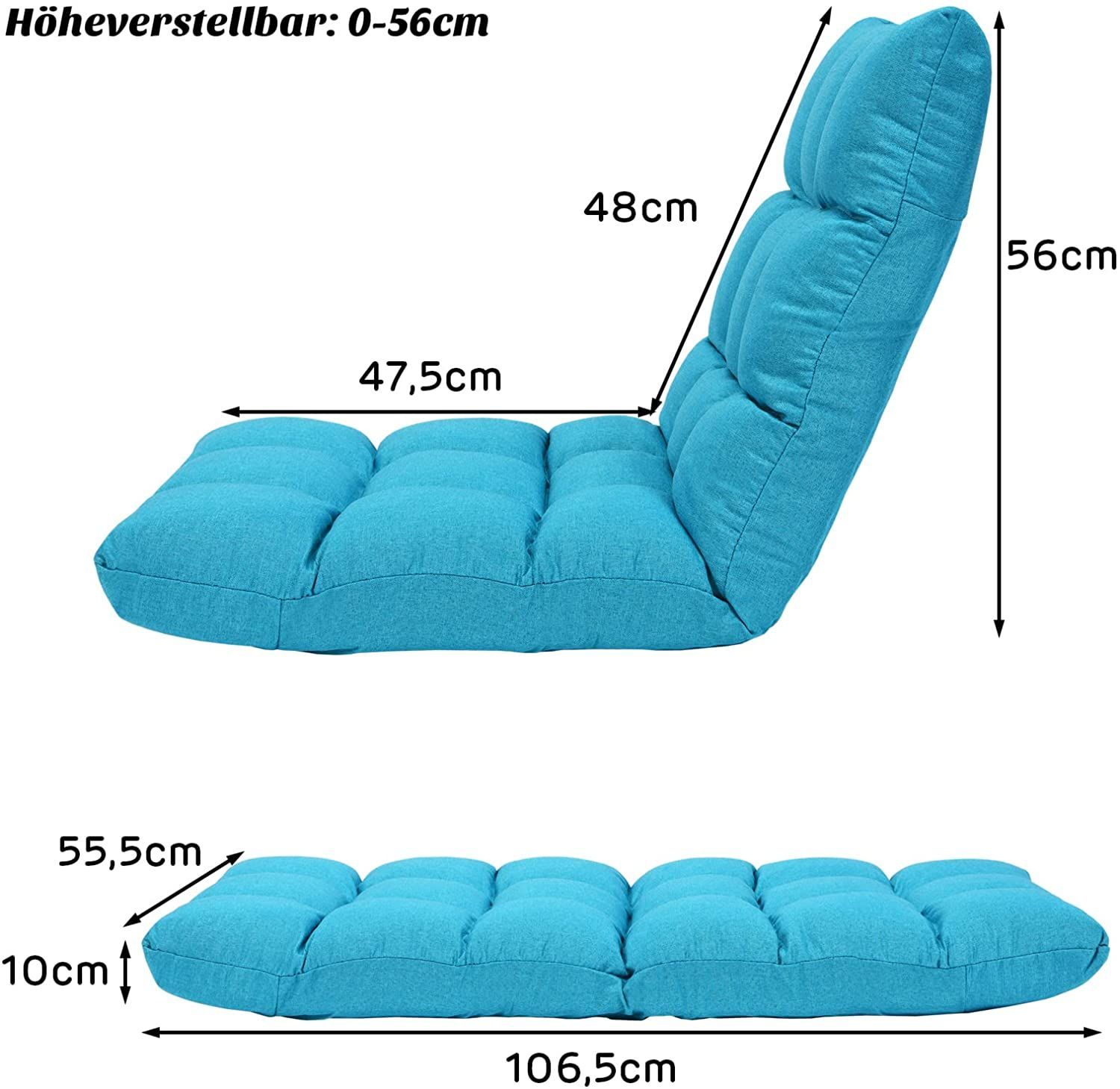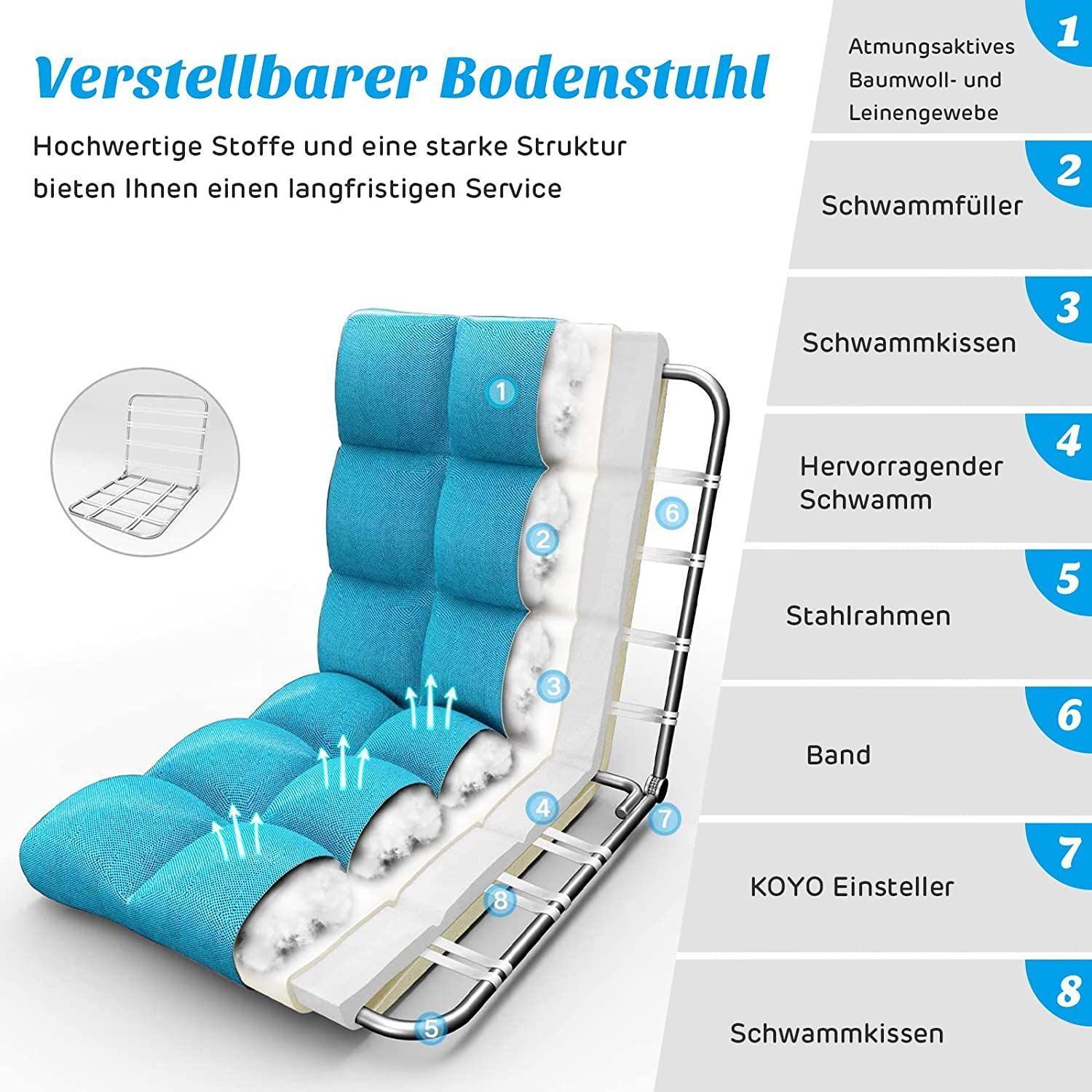 • Bodenstuhl mit Verstellbarer Rückenlehne, Bodensessel mit Liegenfunktion, Bodenkissen