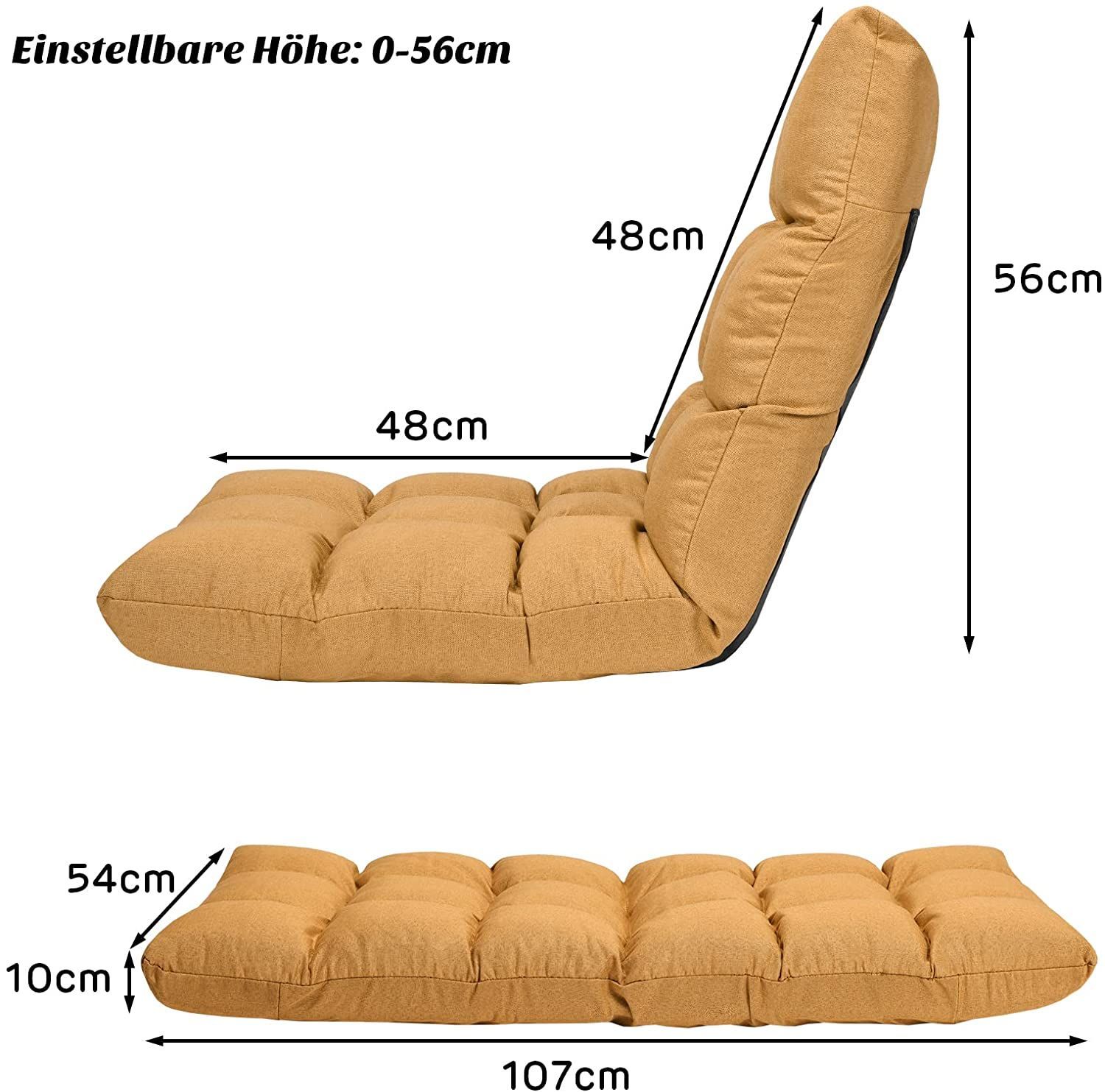 Bodenstuhl Bodensessel mit 6- stufig Verstellbarer Rückenlehne, Game Sessel gepolster