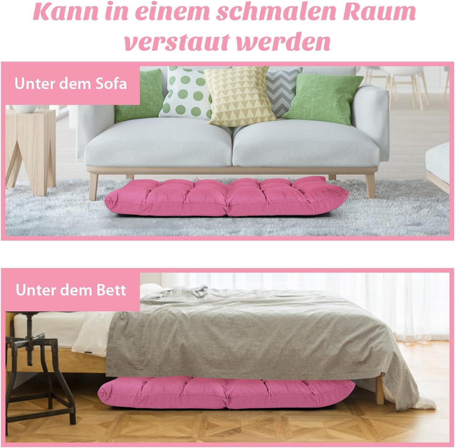 • Bodensofa Sofabett klappbar, 6-stufig einstellbares Bodensessel, Bodenstuhl 2 Kissen