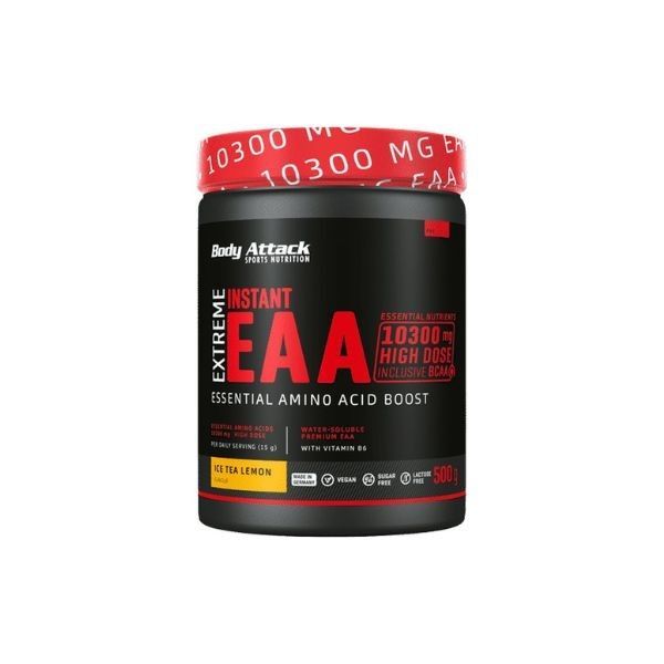 Body Attack Instant EAA 500g Instant EAA ist das Top-EAA Produkt von Body Attack für Muskelaufbau - und Definitionsphasen mit allen essentiellen Aminosäuren (EAAs + BCAAs). EAAs eignen sich für vor oder während dem Training zur direkten Versorgungen mit den wichtigsten Aminosäuren. Prozesse wie Musk