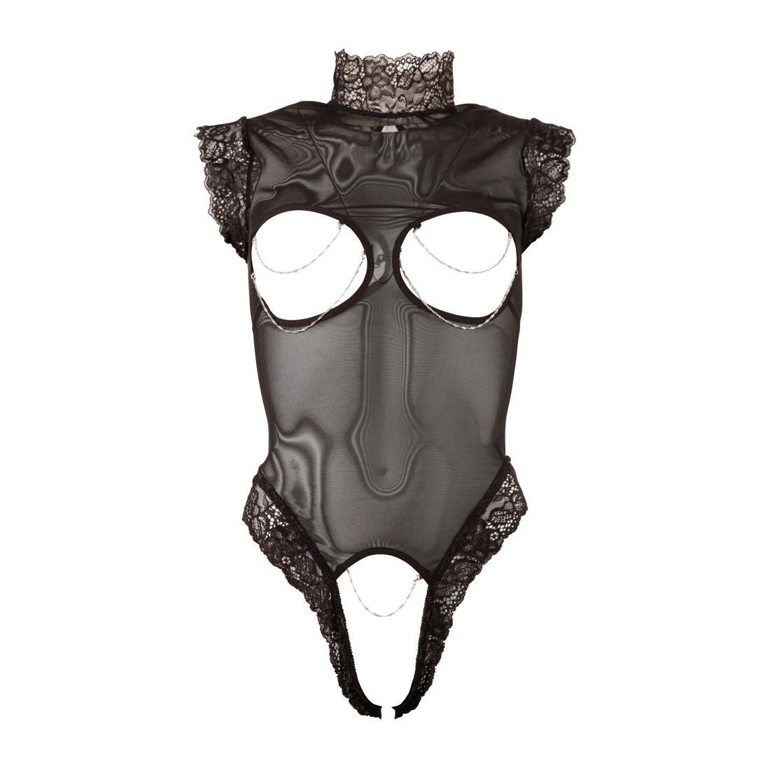 Body Schritt offen transparent schwarz dessous Reizwäsche 46 S M L XL "Chains"