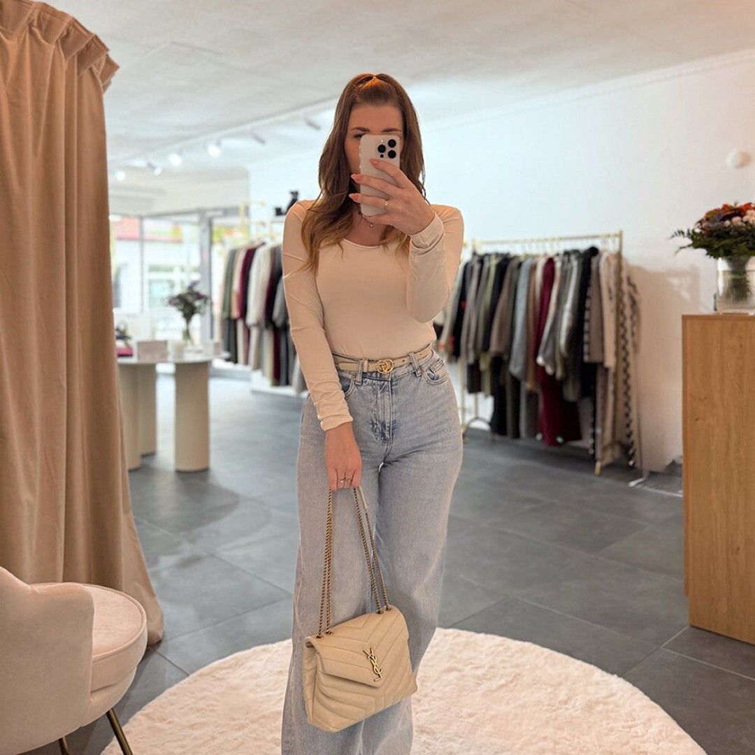 Body U-Boot-Ausschnitt Karla Creme Druckknopf Onesize (XS-XL) elegant Shirt Frau