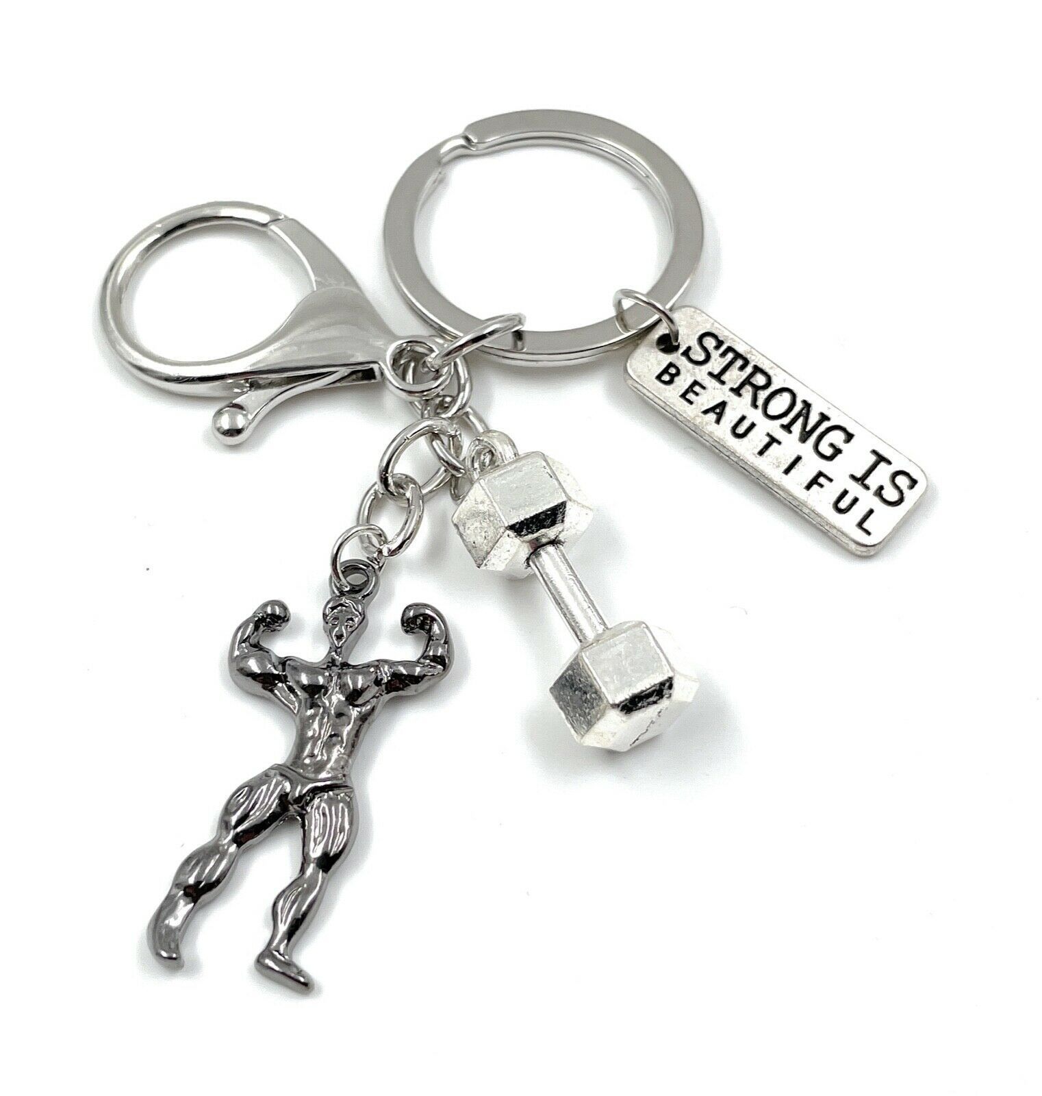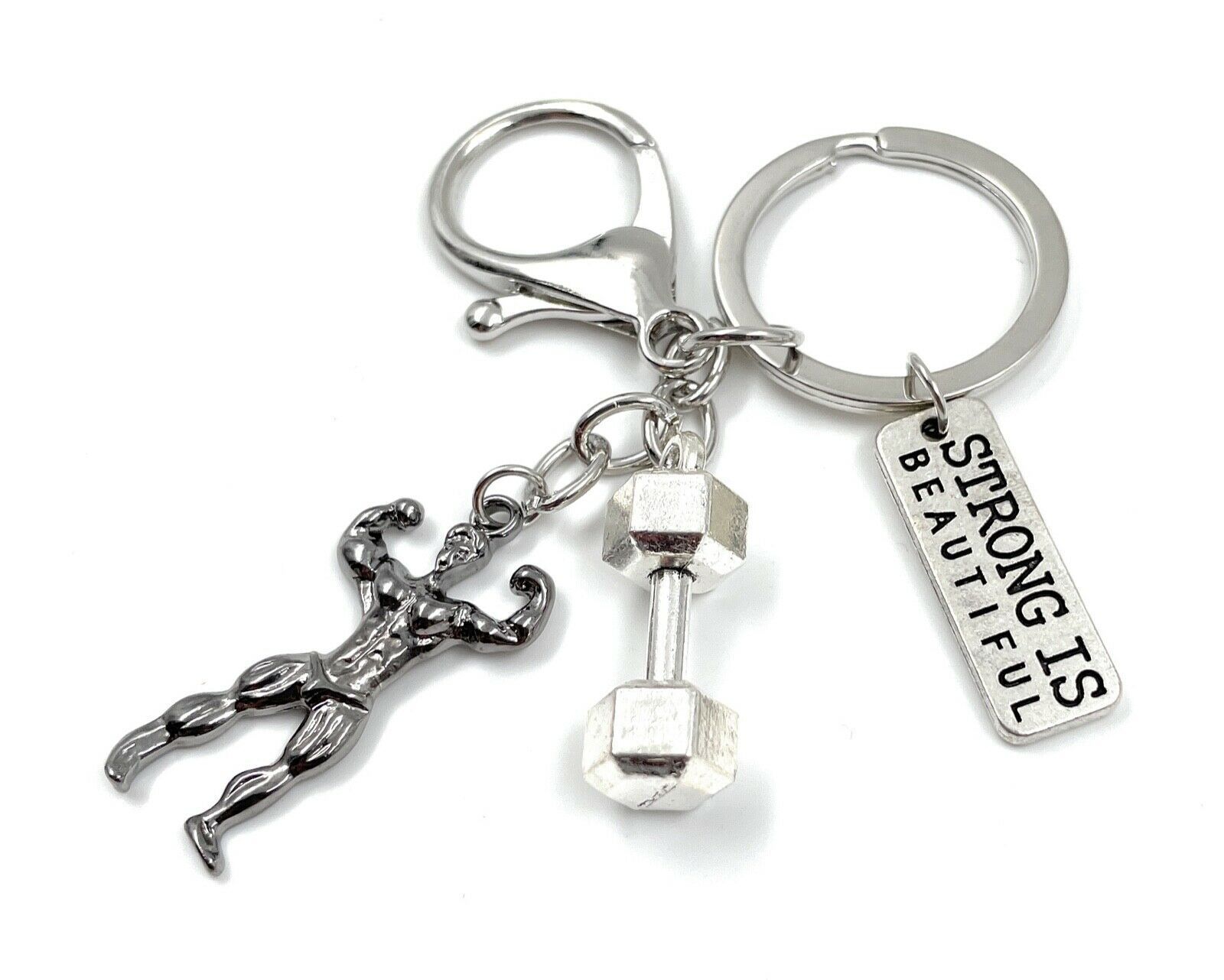 Bodybuilder Fitnessstudio Hantel Schlüsselanhänger Metall Glücksbringer Anhänger