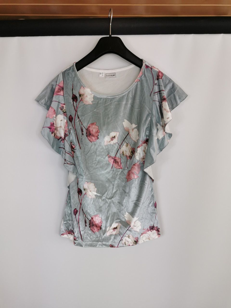 Bodyflirt Bodyflirt Samtshirt mit Blumenaufdruck, mattsilber, Gr. 32/34