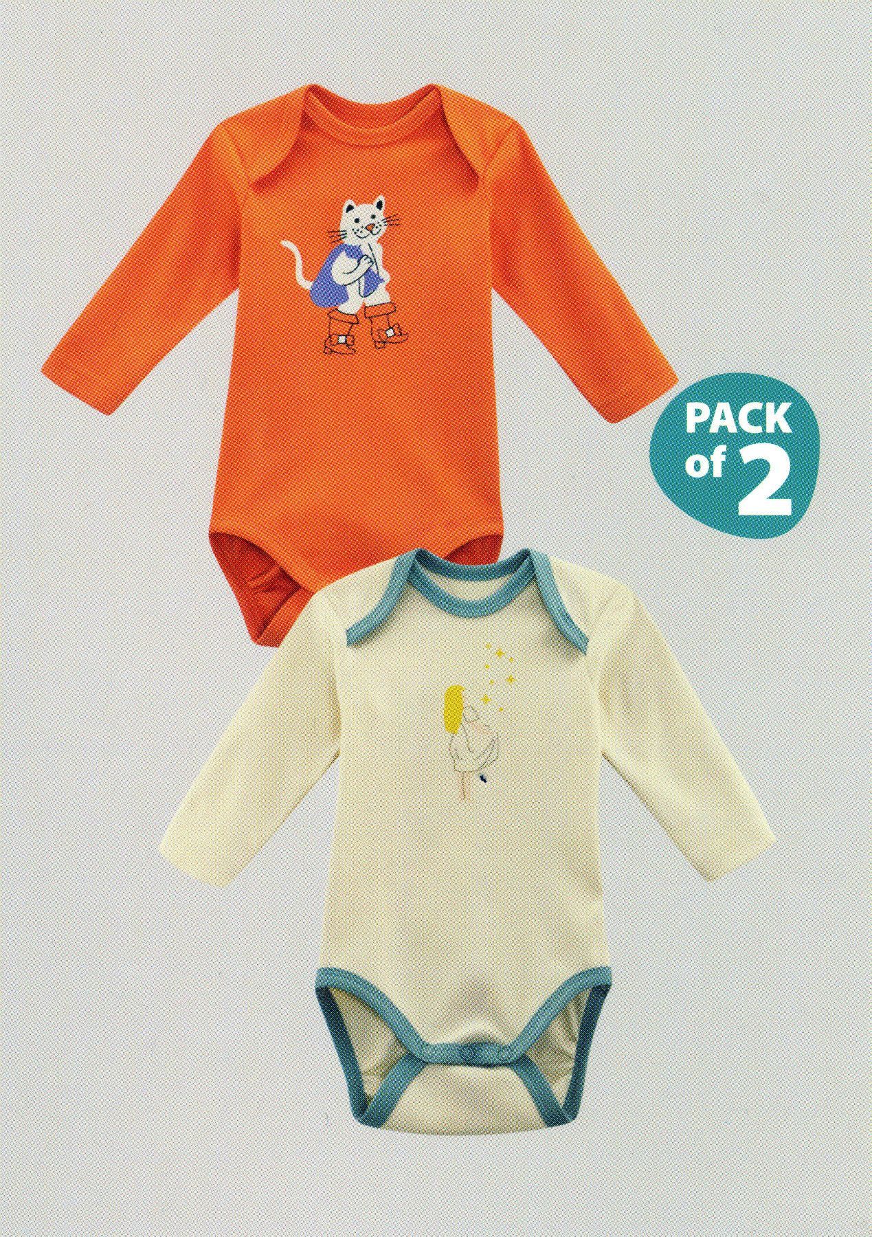 Bodys, 2 Stück, 100% kbA-Baumwolle, farbig, bedruckt, Neu&OVP, Bio, Öko