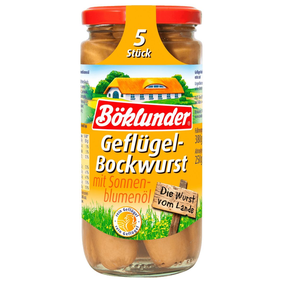 Böklunder Geflügel Bockwurst extra Zart mit Sonnenblumenöl 5 St. 250g