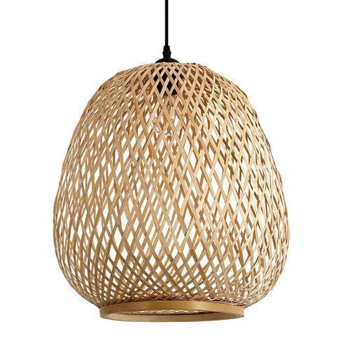 BOHO BARSO Pendelleuchte in Bambus Farbe: Natur (Ø40cm) + Glühbirne 7W E27 Warmweiß