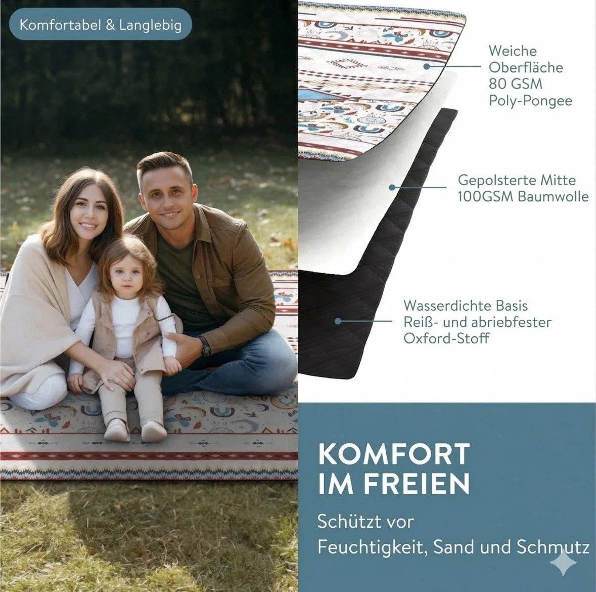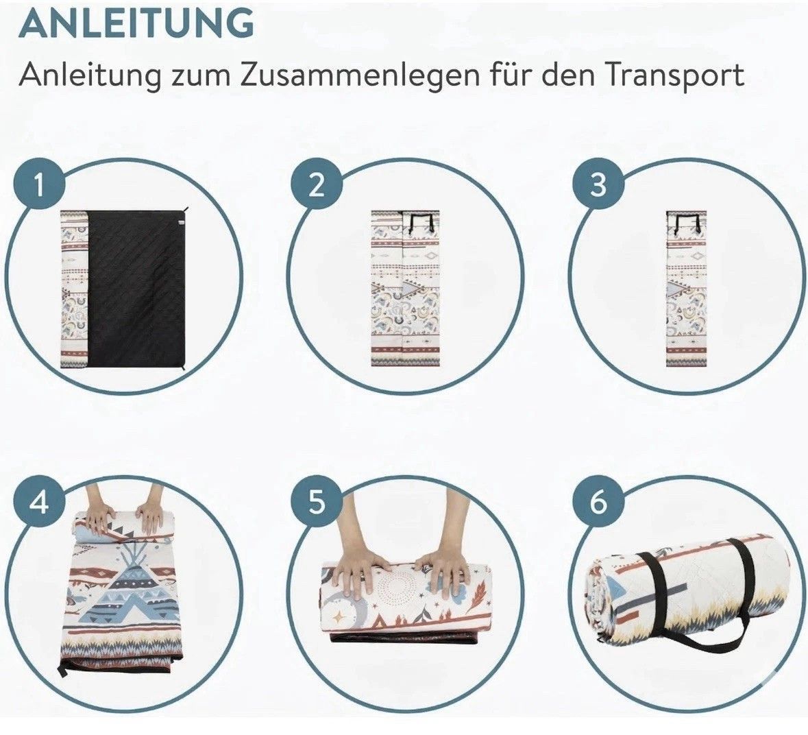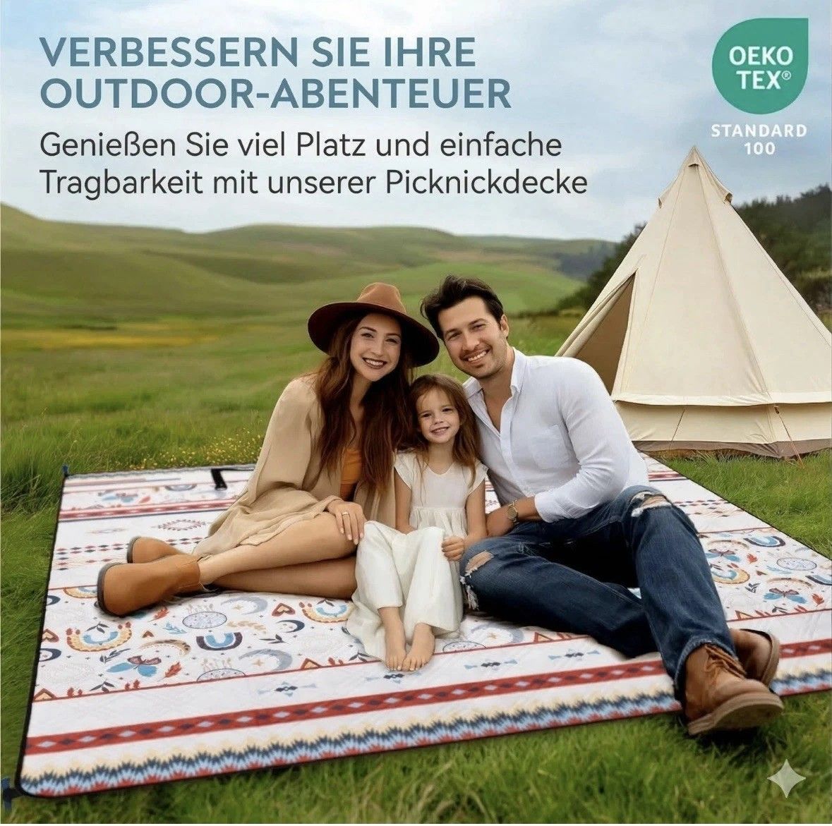 Boho Picknickdecke 200x200 groß XXL Outdoor Strand Decker wasserdicht Jemidi