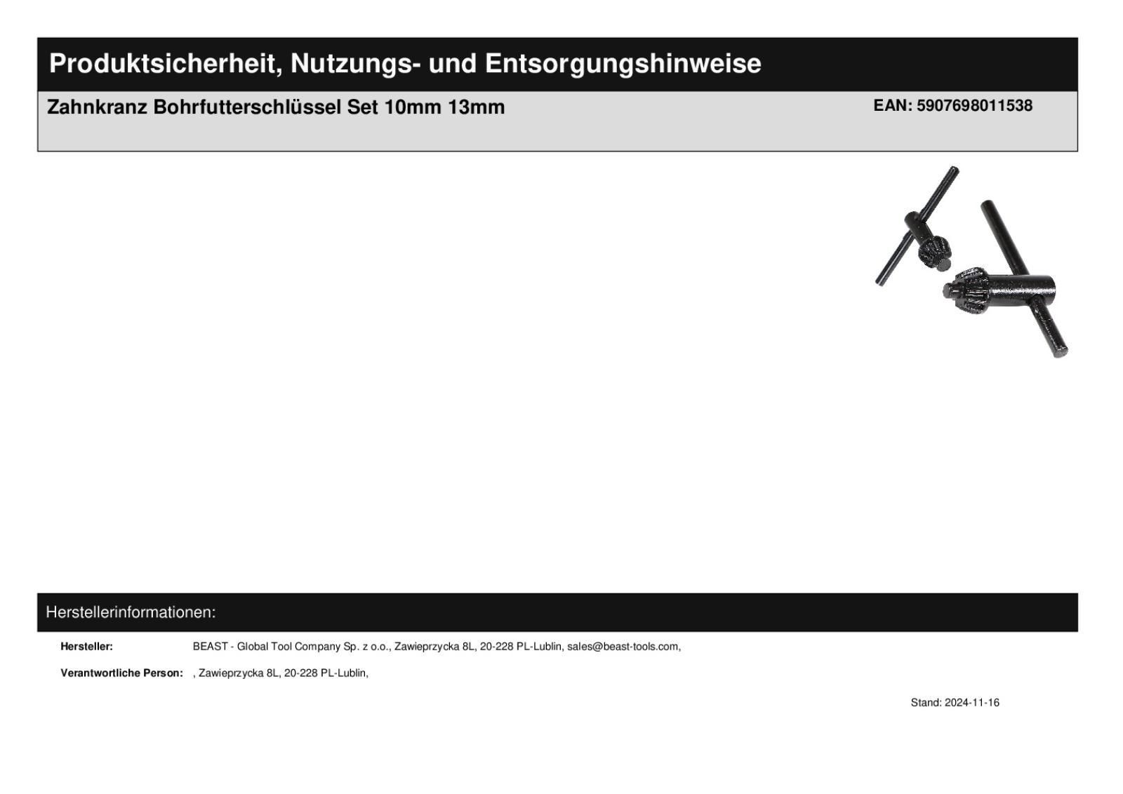 Bohrfutterschlüssel Set Zahnkranz Schlüssel 10mm 13mm Bohrmaschine Feststeller