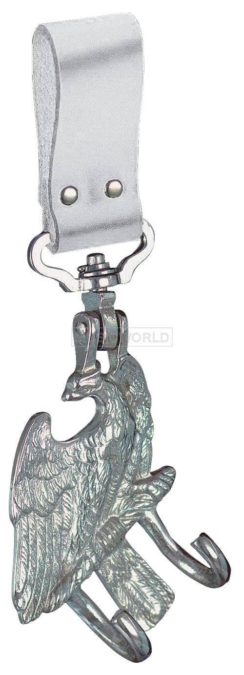 Bold 0234 Tragadler groß weiße Schlaufe Die Features: große Ausführung für kleine Trommel und Paradetrommel Tragadler vernickelt Schlaufe aus echtem Leder, Farbe weiß besonders starker Halt durch 2-fach Vernietung