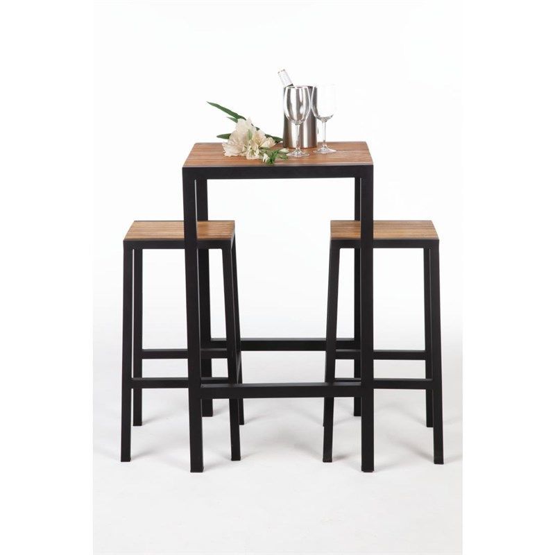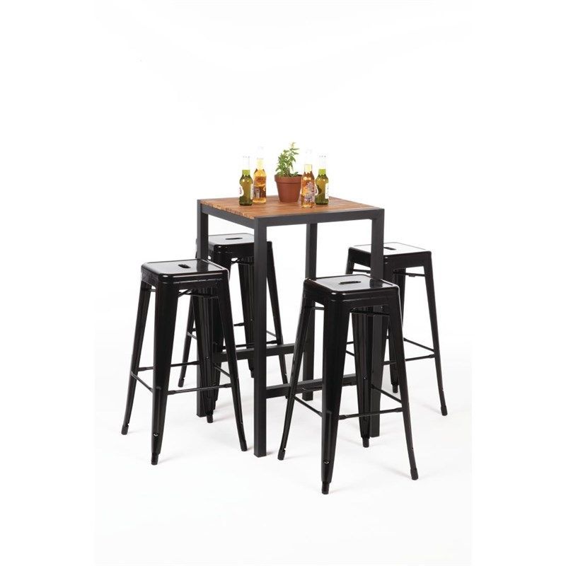 Bolero Bartisch quadratisch aus Stahl mit Akazienholz 600x600x1000mm