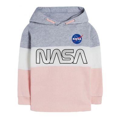 Mädchen-Sweatshirt mit silbernem NASA-Schriftzug | Grau-Weiß-Rosa gestreift
