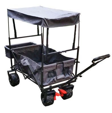 • Bollerwagen Handwagen mit Dach mit Regenschutz Outdoor Camping faltbar Grau