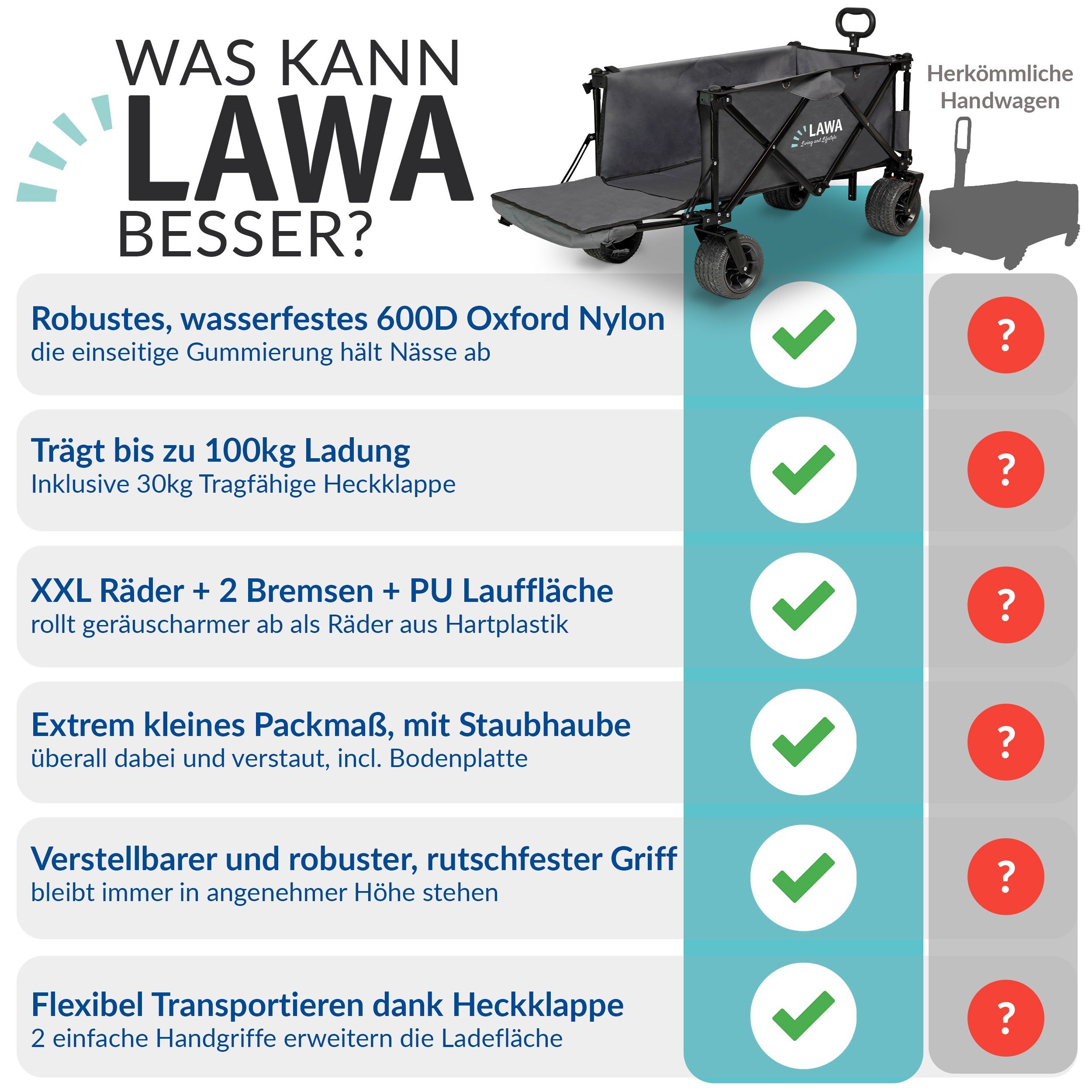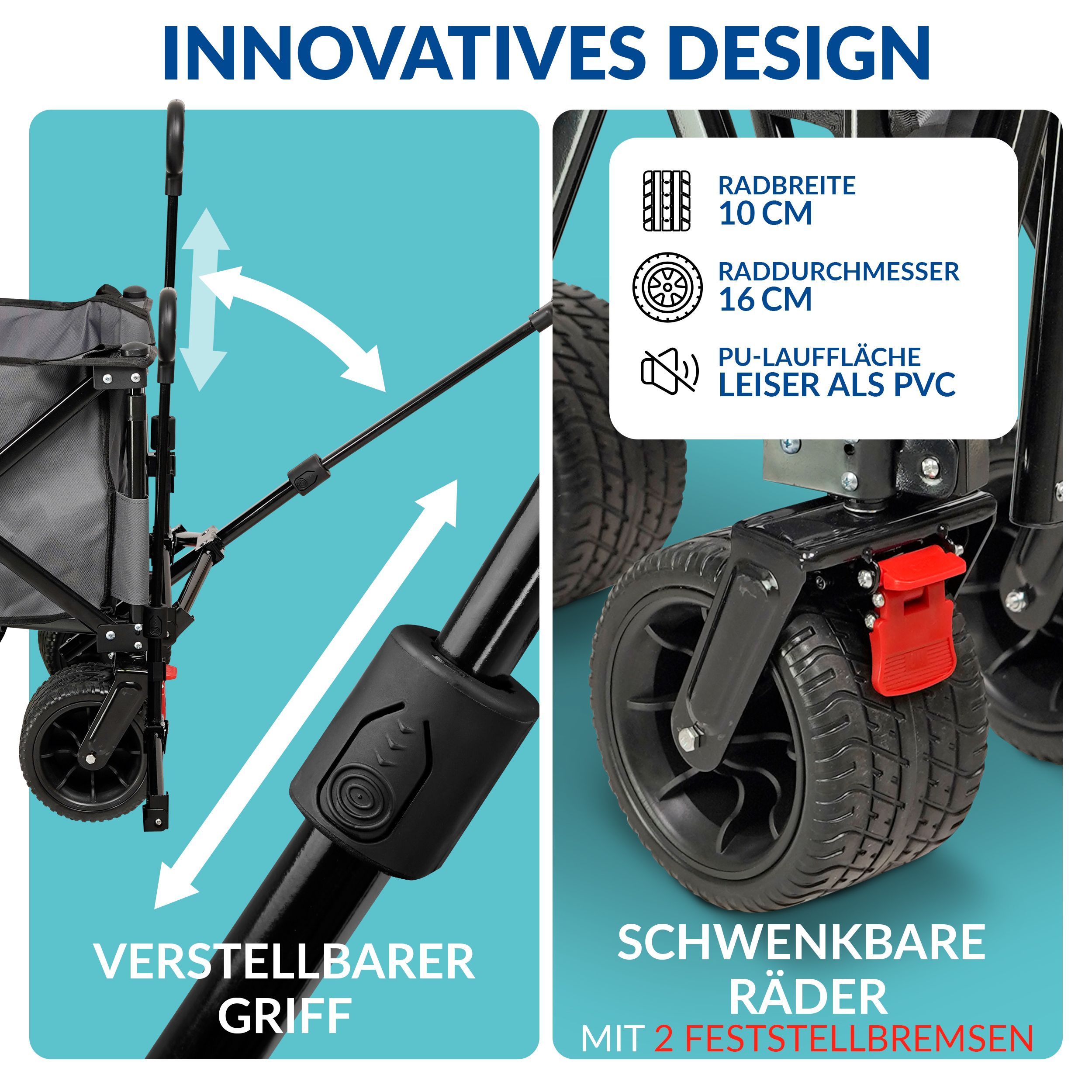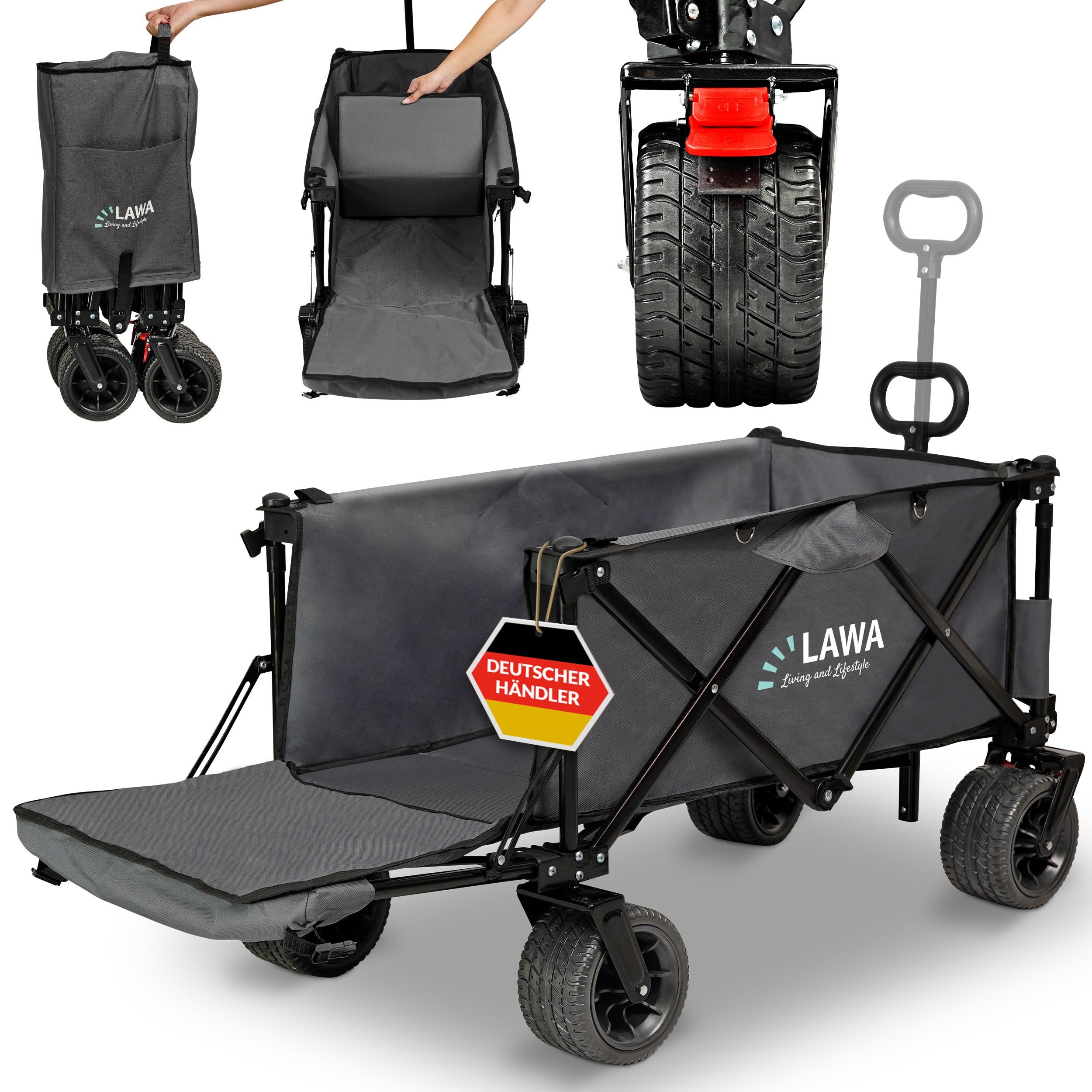 Bollerwagen faltbar verlängerbar mit Heckklappe klappbarer Transportwagen mit Bremse