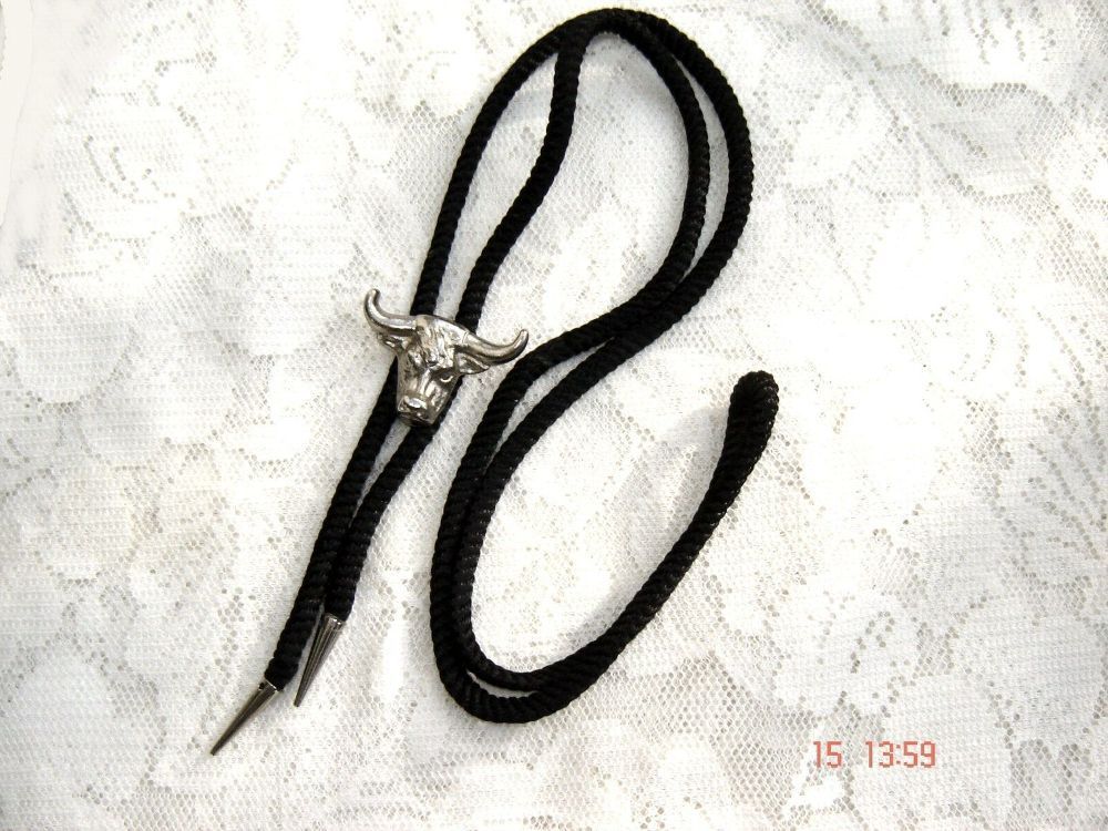 Bolotie Hemdschmuck Kordel schwarz m Stierkopf Western Westernreiten Cowboy s-p