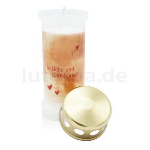 Bolsius-motivkerze "In Liebe und Dankbarkeit", 67/173 mm, Brenndauer ca. 60h, Li