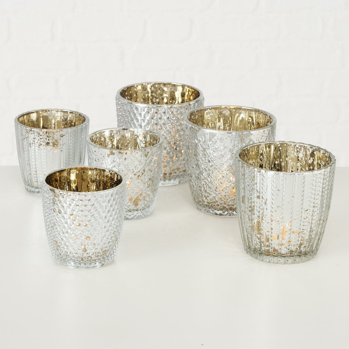 Boltze Boltze 6x Windlicht Patty, Antiksilber, Höhe 7-9 cm