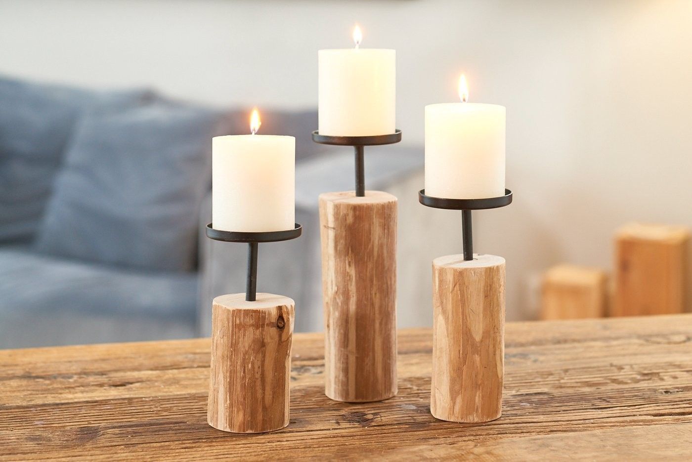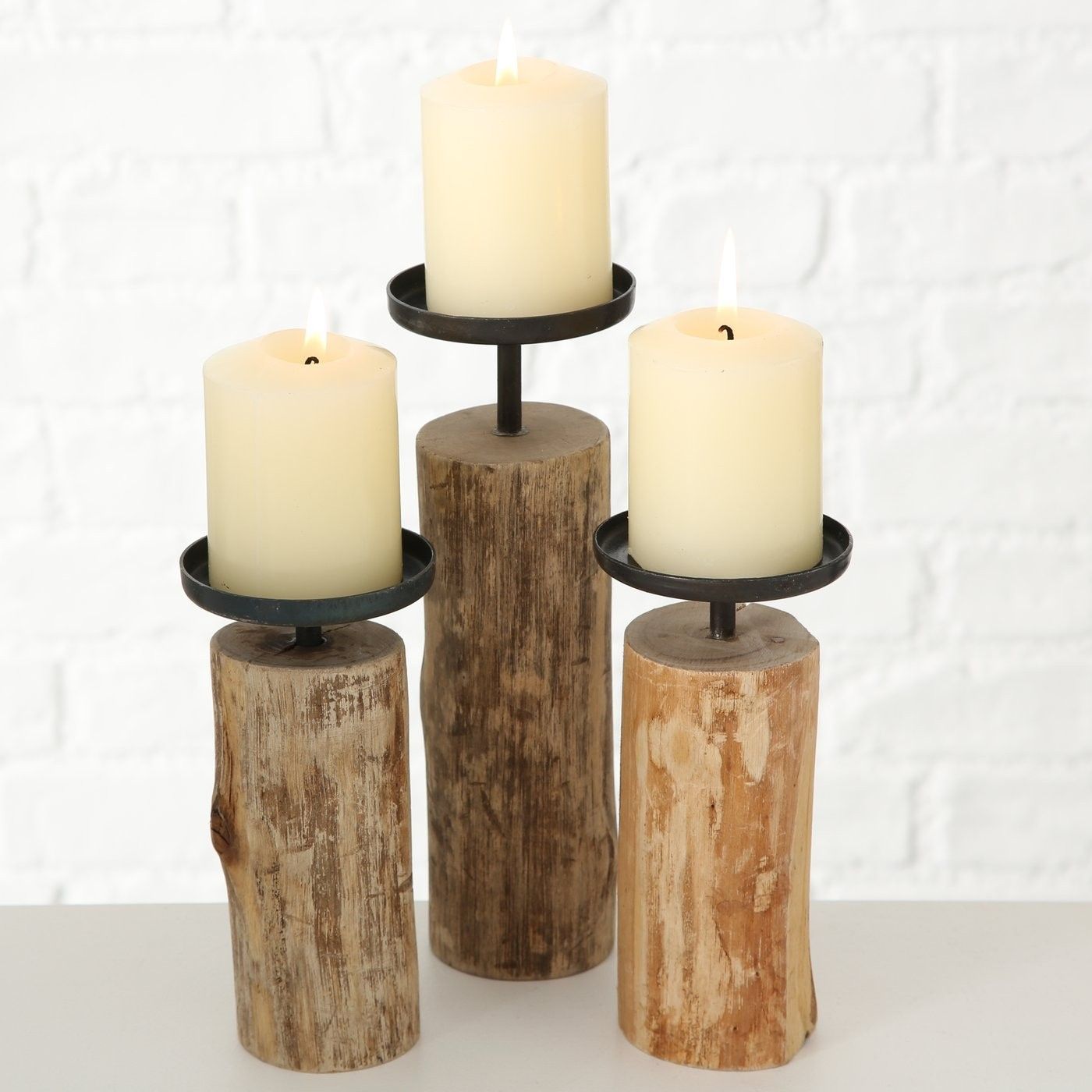 Boltze Boltze Kerzenständer Tempe (3-teiliges Set, Kerzenhalter aus Holz + Metall)