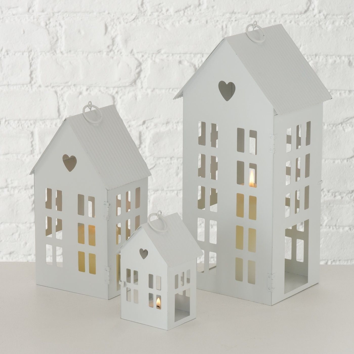 Boltze BOLTZE Laterne Alamo Haus 3er Set Weiß Windlicht Metall Skandinavisches Design
