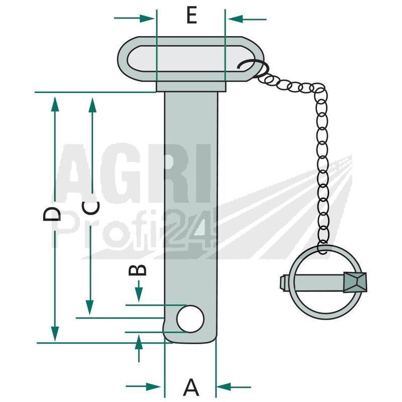Kupplungsbolzen mit Kette und Splint 28x165 Verzinkte und verstärkte Ausführung Bemaßung siehe Bild: DurchschittA-28 C-80 D-205 DurchschittB-10 C-165 Besuchen Sie unseren Shop mit weiteren Traktor- und Forstartikel