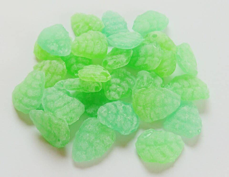 Waldmeister-Bonbons aus der Bonbonmanufaktur Edel Edel Waldmeister- Bonbons in der klassischen Blätterform schmecken unnachahmlich nach „Maikraut“ Waldmeister: bewährt und immer im Trend