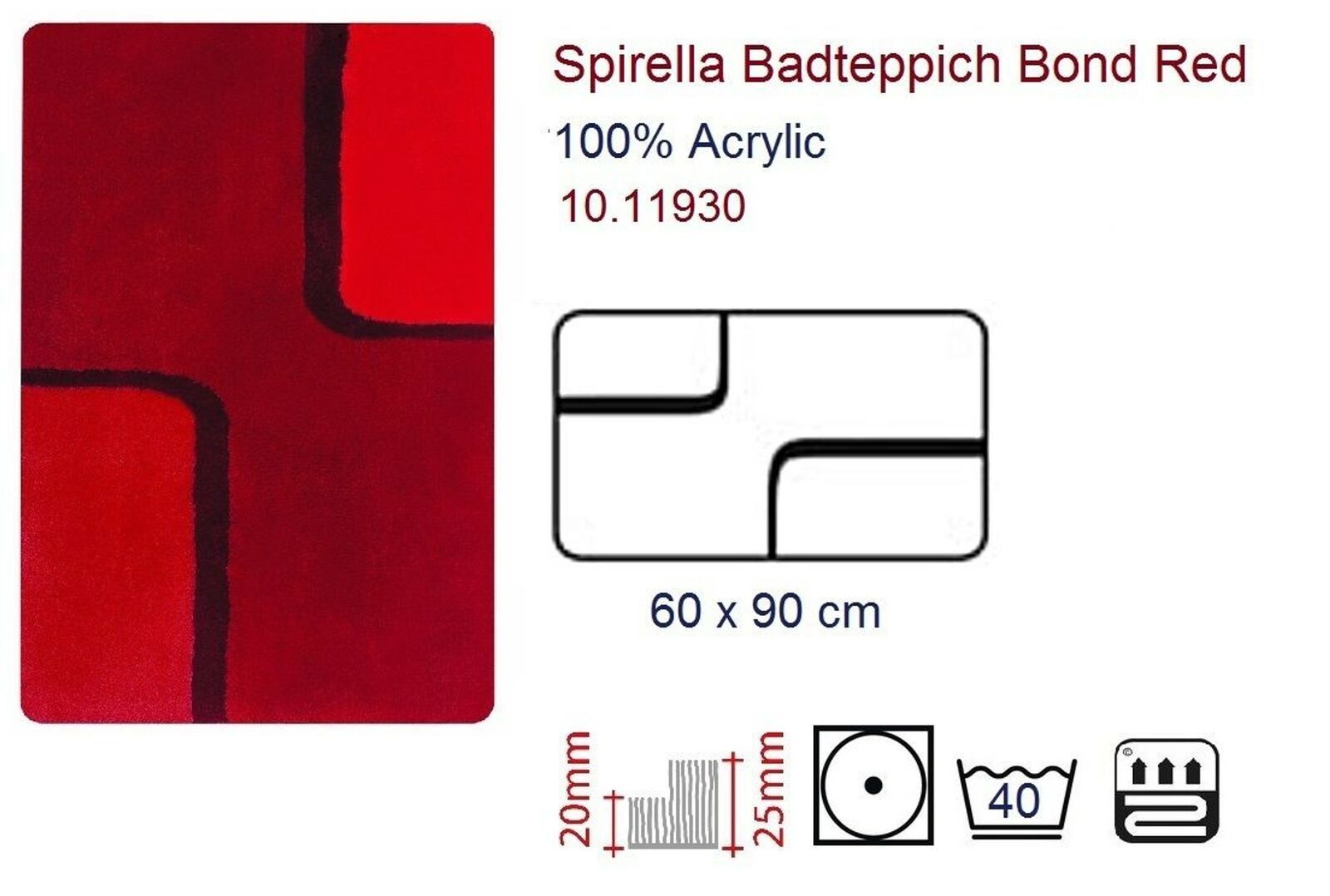 Bond Red/ Rot Badteppich Badematte 60x90cm. Florhöhe: 20-25mm.