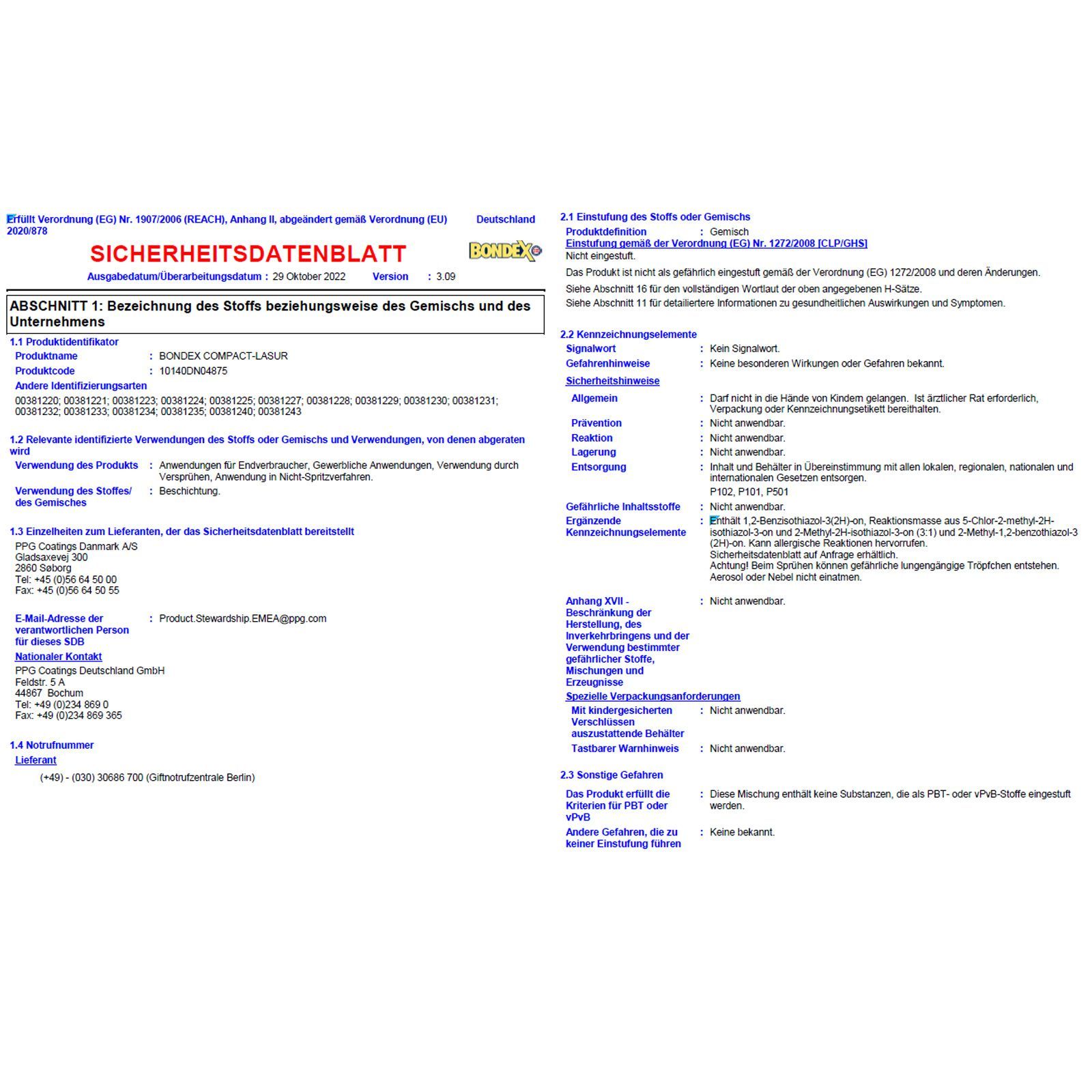 BONDEX Compact Lasur 0.75 LTR Schutzlasur Holzschutz Holzlasur UV-Schutz