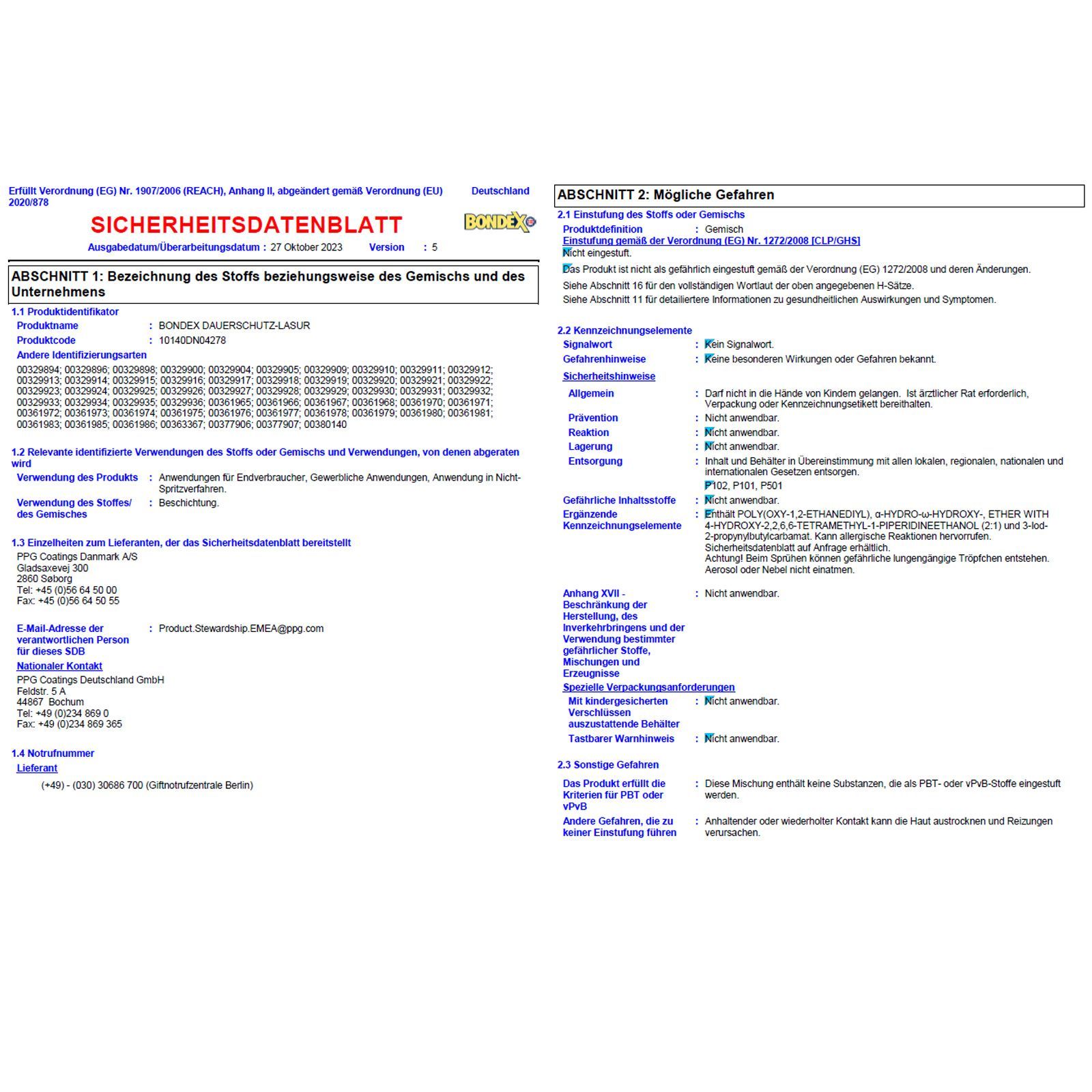 BONDEX Dauerschutz-Lasur 0.75 LTR Wetterschutzlasur Fensterlasur Türenlasur
