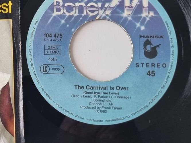 Boney M. - The Carnival Is Over / Going Back West 7'' Vinyl Germany