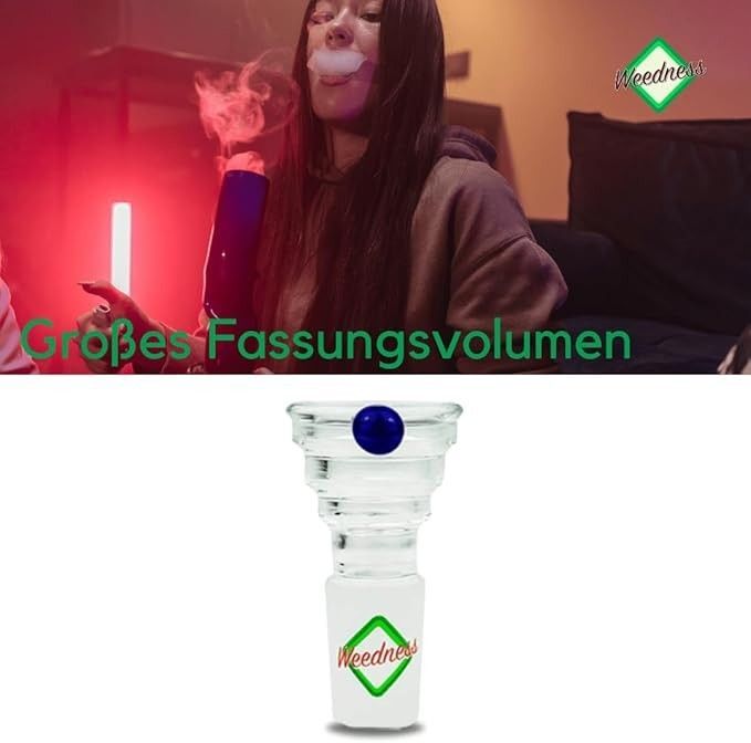 Bong-Glas-Kopf 14,5 mm oder 18,8 mm Schliff 3-Etagen - Steckkopf Chillum Adapter