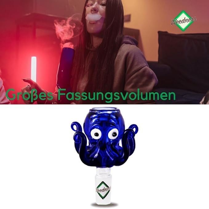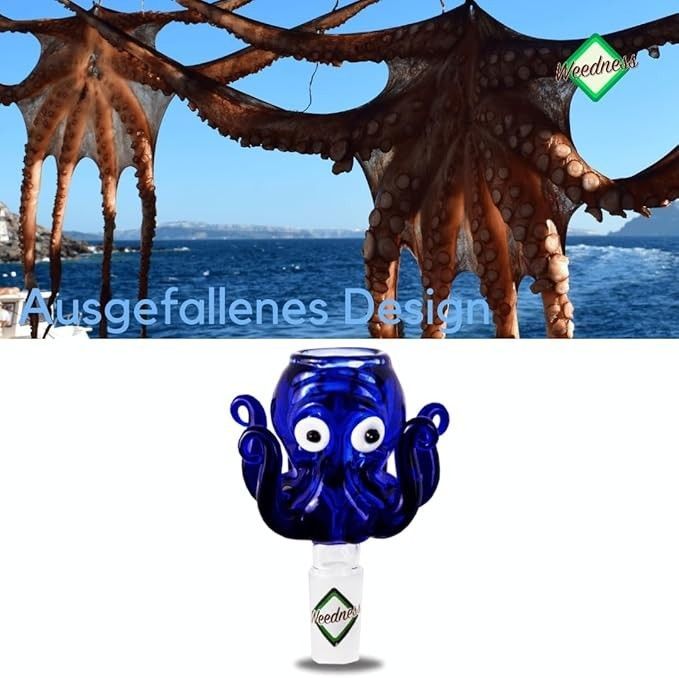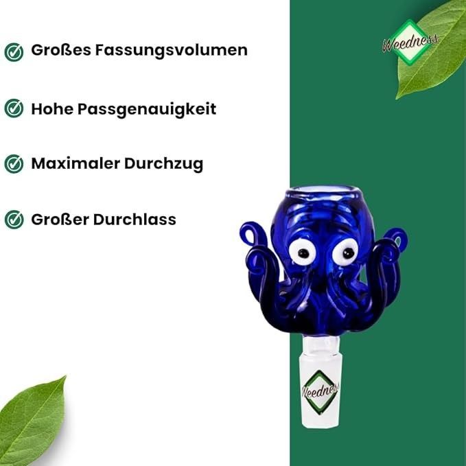 Bong-Glas-Kopf 14,5 mm oder 18,8 mm Schliff Octopus - Steckkopf Chillum
