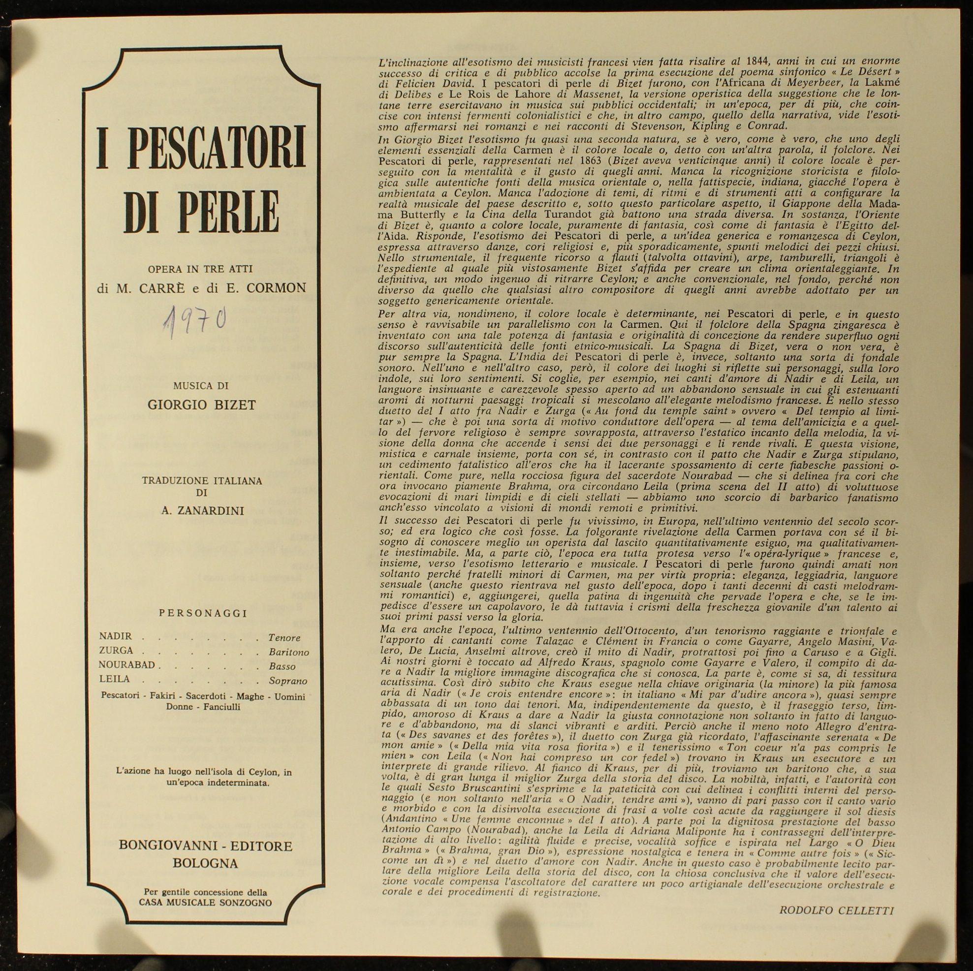 Condition Vinyl Near Mint (NM or M-) Condition Sleeve Very Good Plus (VG+) Tracks included: I Pescatori Di Perle I 1. > Atto 1 ( I Parte) II 1. > Atto 1 ( Conclusione) 2. > Atto 2 ( I Parte) III 1. > Atto 2 ( Conclusione ) IV 1. > Atto 3