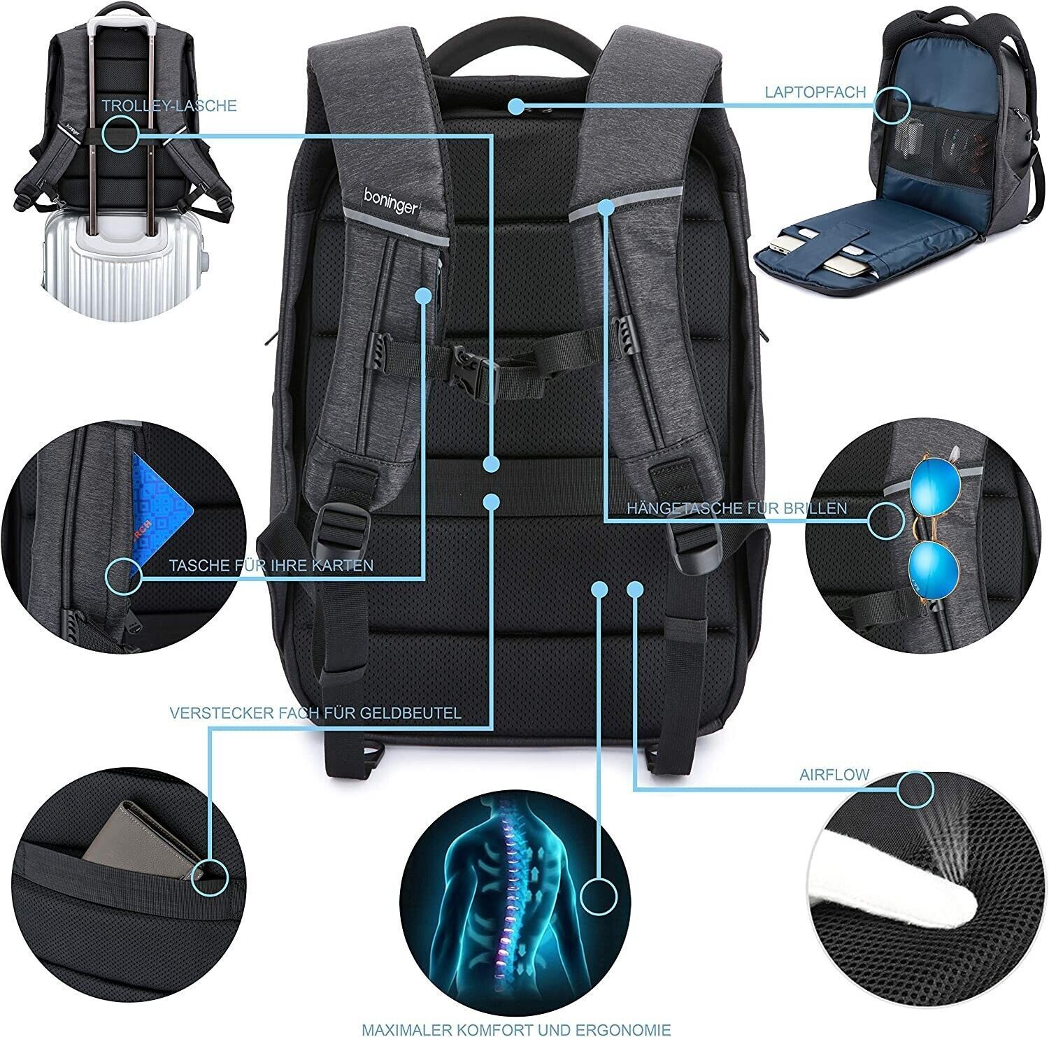 Boninger Unisex Premium Rucksack Wasserdicht Reiserucksack - 13-17 Laptop Notebook Rucksack mit USB-Ladeanschluss Für Alltag Business Arbeit Reisen NEU OVP In zwei Größen erhältlich, bitte nach dem Kauf mitteilen Medium ----> Hx Lx Bx 40 31 19 oder Large -------> Hx Lx Bx 44 33 19 PERFEKTER BE